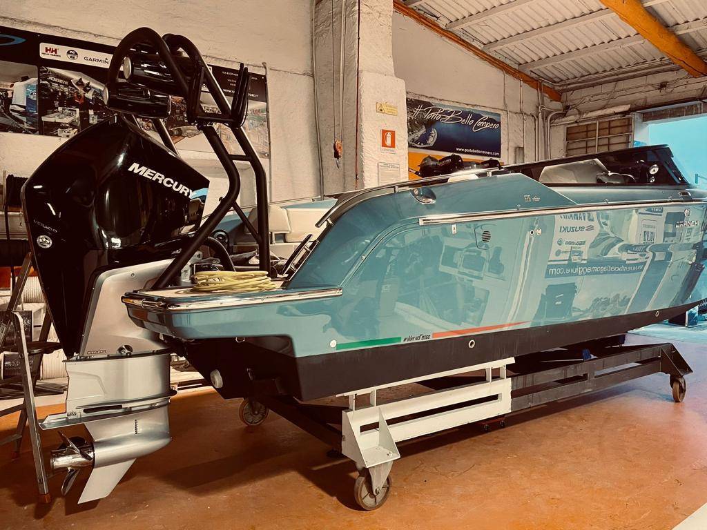 Notas de armamentoLuci di navigazione; Luce di fonda; Luci rollbar; Luci subacquee; Verricello 500 W; Ancora in acciaio; 30 mt. Catena; Bitte ormeggio; Plancetta in teak; Elica di prua; Coperta e pozzetto in teak; Tavolo per 2 pozzetti; Presa 220; Caricabatterie; Stacca batterie; Frigorifero pozzetto (42 l); Wc elettrico; Serbatoio acque nere; Tendalino; Telo copertura totale scafo; Cuscineria completa incluso trasformazione prendisole prua; Doccia pozzetto; Rollbar a poppa; Parabordi con calza di copertura; Dotazioni sicurezza entro 12 miglia.