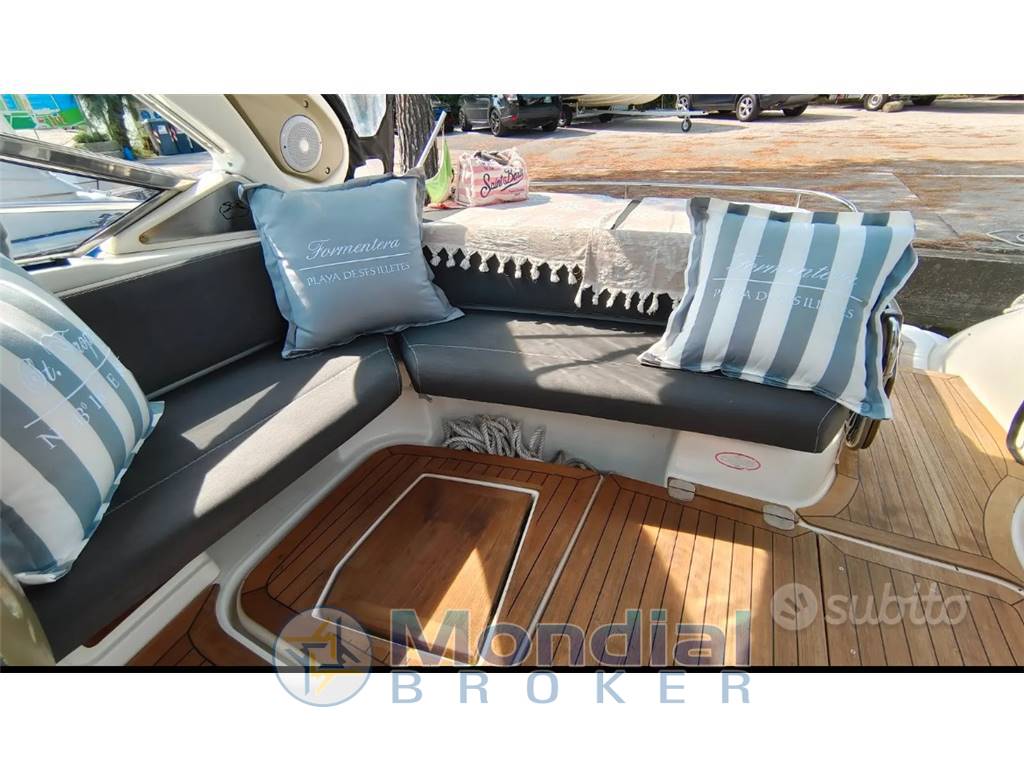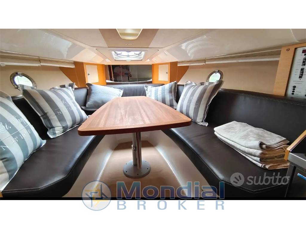 Notas de armamentoCOMPLETA DI:• DONETTE TRASFORMABILE IN LETTO MATRIMONIALE A PRUA • CUCINA COMPLETA DI FRIGO • FORNELLO DUE FUOCHI A GAS • FORNO A MICROONDE • BAGNO CON BOX DOCCIA • LETTO SINGOLO SOTTO IL POZZETTO • FRIGORIFERO • TENDALINO POZZETTO COMPLETO CON CHIUSURA DI POPPA • TENDALINO COPERTURA INVERNALE • CUSCINI PRENDISOLE DI PRUA • POZZETTO E PLANCETTA POPPA IN TECK • GPS RAYMARINE • FLAPS • MANETTE ELETTRONICHE • VHF • SALPA ANCORA ELETTRICO • ELICA DI PRUA • IMPIANTO STEREO • MANUTENZIONE ORDINARIA E STRAORDINARIA DIMOSTABILE CON FATTURE |