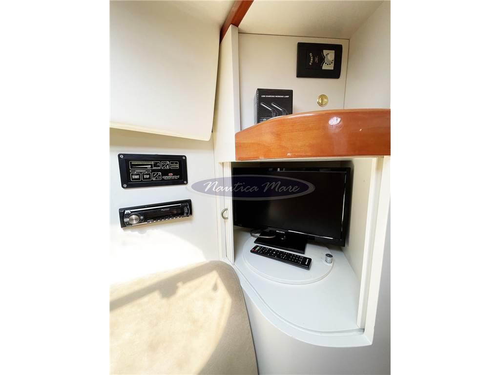 Notas internasNotas de la instrumentaciónAncora, Autoclave, Autogonfiabile, Batterie, Bussola, Colorazione speciale (scafo con fascia blu), Comando motori elettronico, Doccia esterna (con miscelatore c/f), Elica di prua - bow thruster, Flap elettrici, Garage per tender, GPS, Lavandino nel Pozzetto, Luci di cortesia, Luci di navigazione, Passerella, Presa 220V banchina, Radio VHF, Rollbar, Salpa Ancore Elettrico, Scaletta da bagno, Tavolo pozzettoNotas de armamentoAltoparlanti, Boiler, Copripozzetto, Cucina, Cuscineria completa, Cuscineria di poppa, Cuscineria di prua, Cuscineria Pozzetto, Fornello (2 fuochi a gas), Frigorifero esterno, Frigorifero interno, Impianto TV, Microonde, Tendalino, WC marino elettrico |