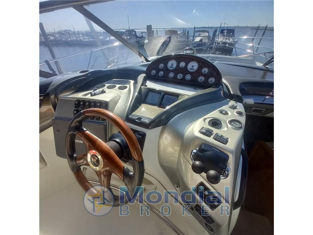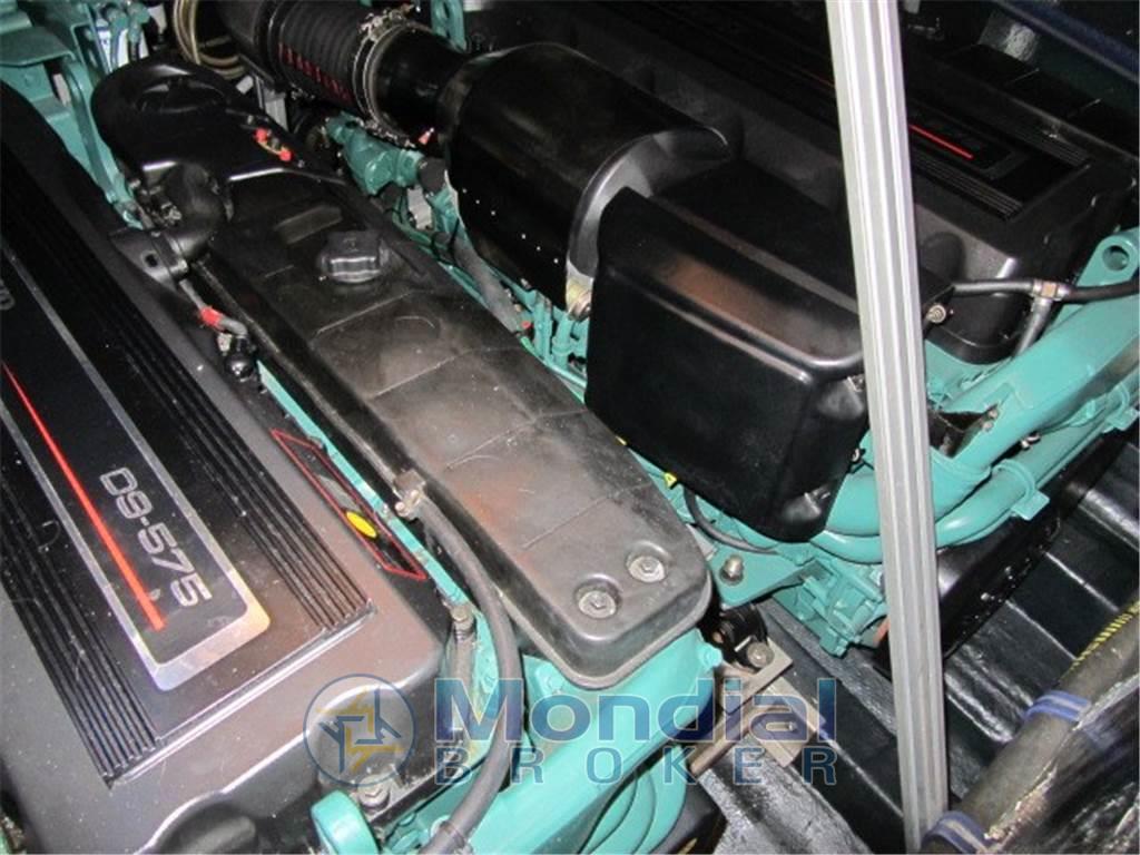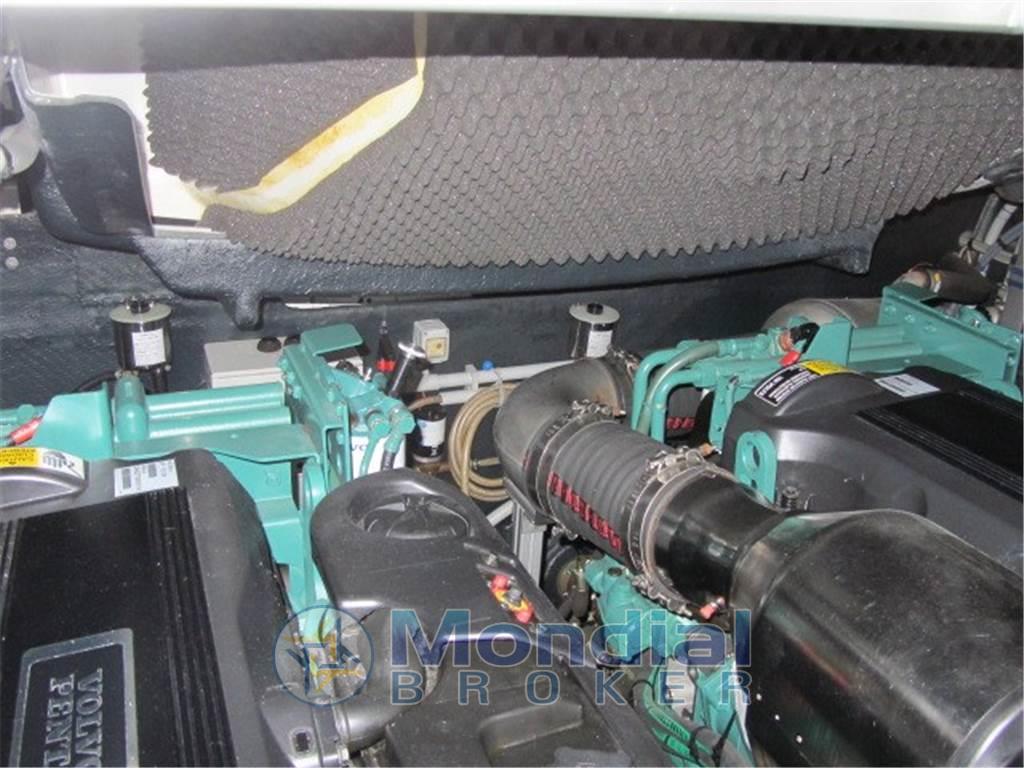 Notas internasNotas de la instrumentaciónAngolo barra, Antenna radar, Bussola, Comando motori elettronico, Computer di bordo, Contametri catena, Contamiglia, Display, Ecoscandaglio (Raymarine), GPS (Raymarine E80), Pilota automatico (Raymarine St 6001), Radar (Raymarine), Radio VHF.Notas de armamentoAllestimento tecnico e di coperta:Allarme motore, Allarme sentina, Apertura Vano Motore Elettrica, Autogonfiabile, Colorazione speciale, Doccia esterna, Elica di prua - bow thruster, Faro orientabile, Flap idraulici, Garage per tender, Impianto antincendio, Indicatori Flaps, Lavandino nel Pozzetto, Luci di cortesia, Luci subacquee, Passerella (Idraulica), Piattaforma, Pompa di sentina automatica, Pompa di sentina elettrica, Pompa di sentina manuale, Pozzetto Teak, Presa 220V banchina, Raddrizzatore, Salpa Ancore Elettrico, Scaletta da bagno, Tavolo pozzetto, Tromba, Winch tonneggio di poppa, Winch tonneggio di prua. Dotazioni domestiche di bordo: Aria condizionata, BBQ/ Grill, Clima reversibile, Impianto acque nere, Prese interne 12v, Prese interne 220v, Serbatoio Acque Nere, 2 WC marino elettrico. Intrattenimento: Altoparlanti, Digitale Terrestre, DVD, Impianto TV, Radio AM/FM, Stereo, 2 TV. Cucina ed elettrodomestici: Cucina, Fornello, Forno, Frigorifero esterno, Frigorifero interno, Ghiacciaia, ICE Maker, Lavastoviglie, Microonde, Piastra in vetroceramica. Tappezzerie: Cappottina, Copripozzetto, Cuscineria completa, Cuscineria di poppa, Cuscineria di prua, Cuscineria Pozzetto, Teli copri finestra, Telo copriconsolle, Telo coprisedile, Tendalino. |