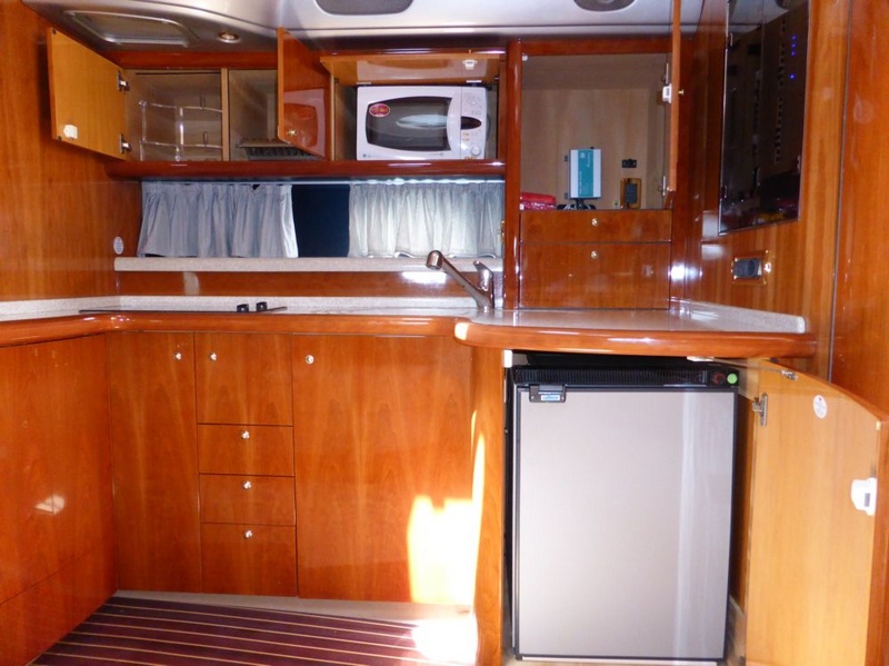 Full instrumentation Raymarine GPS / plotter Raymarine - Raymarine radar antenna reach 48 miles - Autopilot - VHF dsc - anchor winch with radio remote control - Tridata echo / sounder Speed ​​/ Temperature - + Comndo flap position indicator - 360 ° searchlight placed on the roll bar with remote control on the bridge - Radio cassette / CD in saloon with remote control on the bridge - pozzettto radio - stereo radio / CD in 3 independent cabins - TV antenna TV - electronic handcuffs -