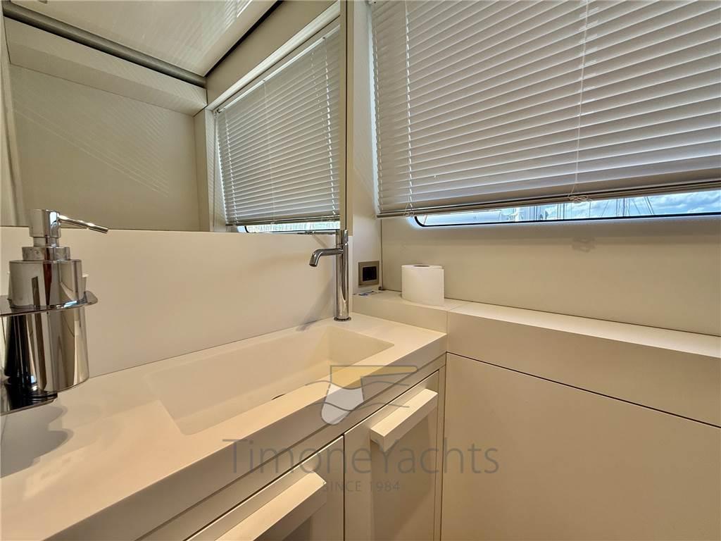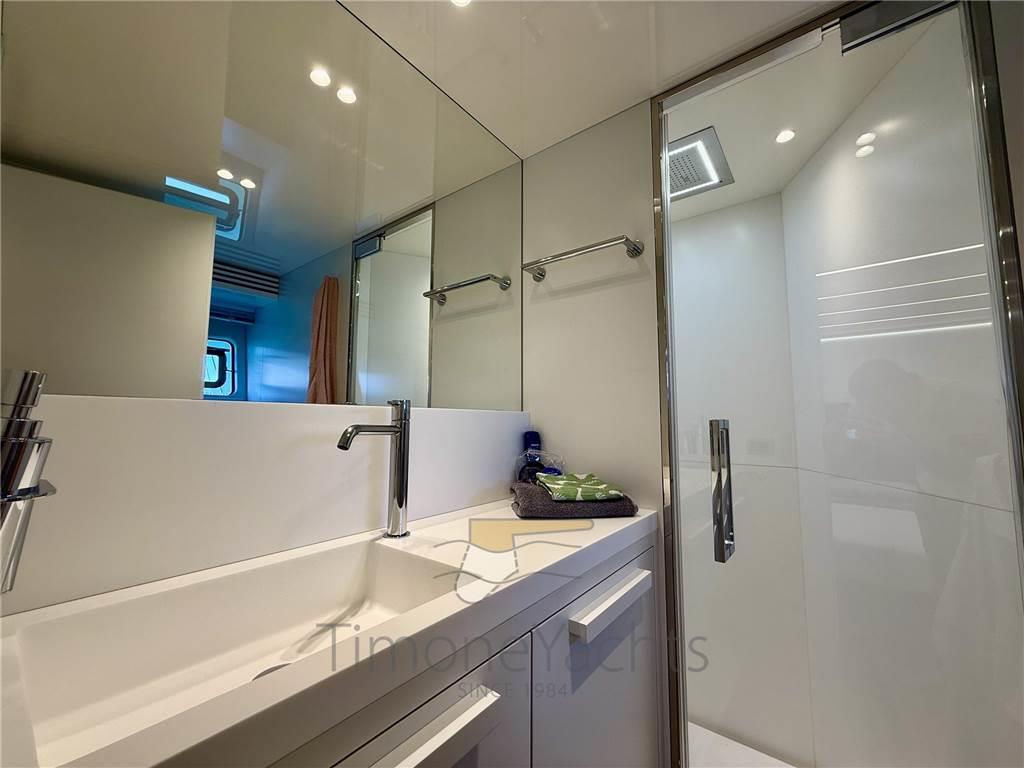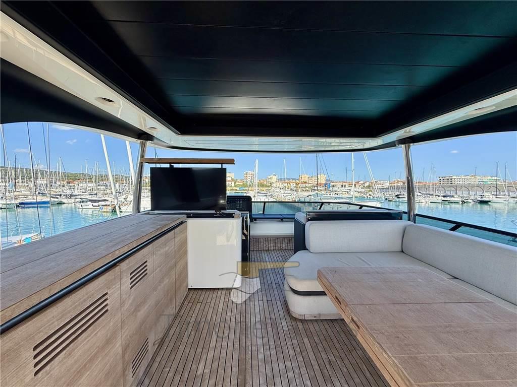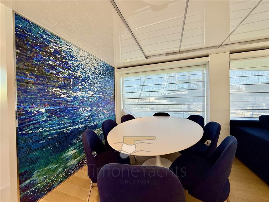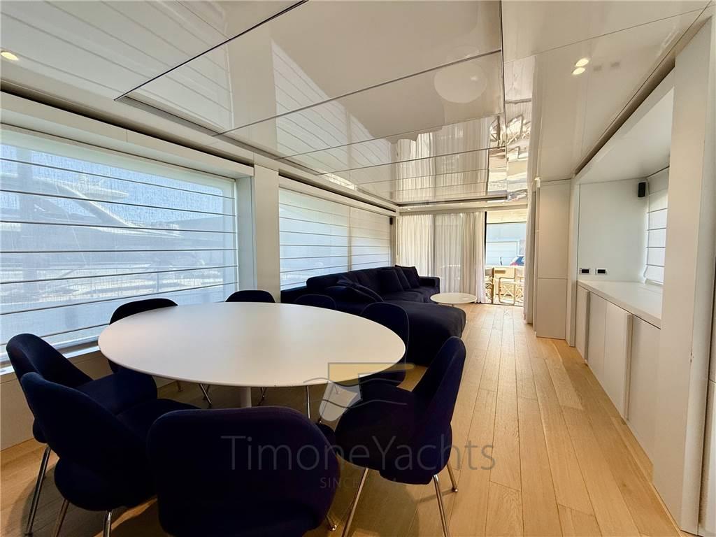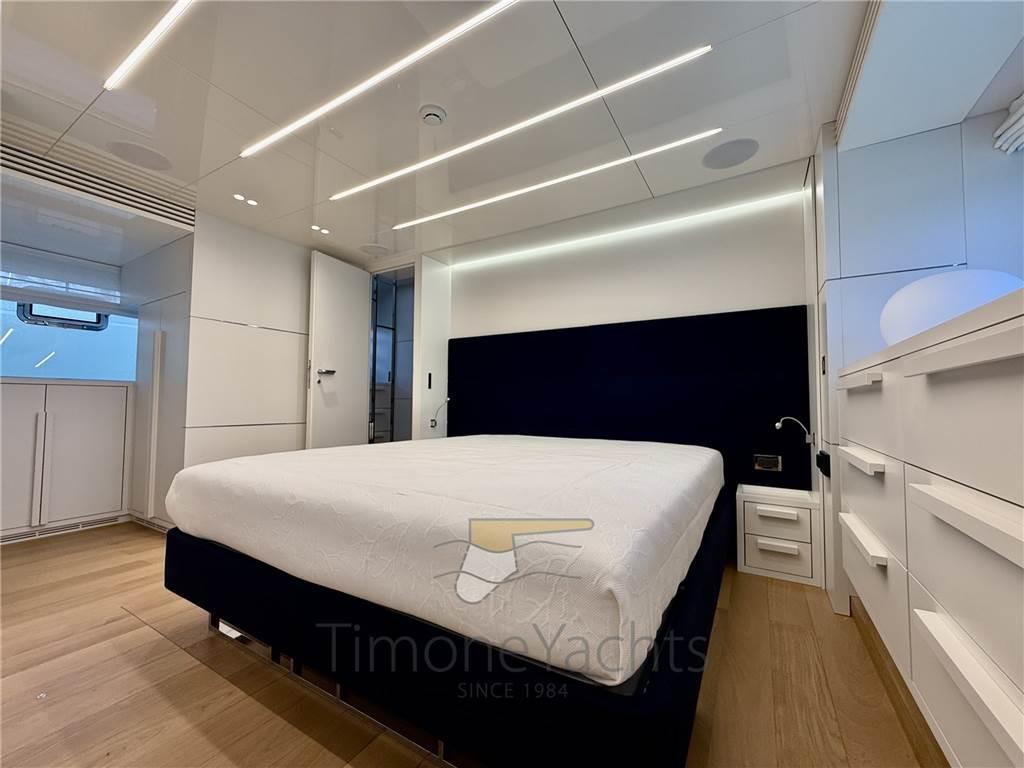 Notas internasNotas de la instrumentaciónAIS, Angolo barra, Antenna radar, Bussola, 3 Comando motori elettronico, Computer di bordo, Contametri catena, Contamiglia, 3 Display (Garmin da 22 Pollici), DSC vhf, Ecoscandaglio, 3 Joystick, Luci di navigazione, Pilota automatico, Plotter, Plotter con antenna GPS, Radar, Radio VHF, Sistema di posizionamento dinamico, Sonar, Stazione vento.Notas de armamentoAllestimento tecnico e di coperta:Allarme fumo/gas, Allarme motore, Allarme sentina, Alternatore, Ancora, Auto Dynamic Trim Interceptor, Camminamenti laterali in teak, 2 Doccia esterna, Doppia timoneria, Elica di poppa - stern thruster, Elica di prua - bow thruster, Flap elettrici, Garage per tender, Hard top (Con lamelle in alluminio regolabili), Impianto Aria Compressa, Lavaggio catena, Passerella, Piattaforma, Pompa di sentina automatica, Pompa di sentina elettrica, Ponte in teak, Porta ingresso, Porta laterale, Pozzetto Teak, Presa 220V banchina, Presa acqua banchina, Salpa Ancore Elettrico, Scaletta da bagno, Stabilizzatori (Pinne stabilizzatrici), Tavolo pozzetto, Tender, Tromba, Winch tonneggio di poppa, Winch tonneggio di prua. Dotazioni domestiche di bordo: Aria condizionata, BBQ/ Grill, Clima reversibile, Pavimento interno in legno, Prese interne 12v, Prese interne 220v, Riscaldamento, Serbatoio Acque Nere, 5 WC marino elettrico (Uno per ogni cabina + Day toilet). Intrattenimento: Altoparlanti, Impianto TV, 5 Meccanismo saliscendi per TV, Radio AM/FM, Stereo, TV. Cucina ed elettrodomestici: Asciugatrice, Congelatore, Cucina, Forno, 3 Frigorifero esterno, Frigorifero interno, ICE Maker, Lavastoviglie, Lavatrice, Microonde, Piastra in vetroceramica, Winecooler. Tappezzerie: Cuscineria completa, Cuscineria di poppa, Cuscineria di prua, Cuscineria fly, Cuscineria Pozzetto, Oscuranti. |