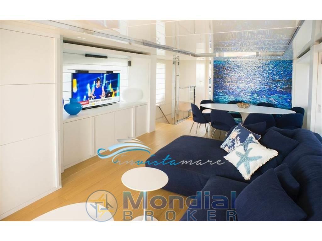 Notas de armamentoAltoparlanti, Antenna Satellitare TV, Aria condizionata, Asciugatrice, Barometro, BBQ/ Grill, Binocolo, Boetta fumogena, Boiler, Carte nautiche, Cassaforte, Clima reversibile, Congelatore, Cucina, Cuscineria completa, Cuscineria di poppa, Cuscineria di prua, Cuscineria fly, Decoder satellite, Digitale Terrestre, Dissalatore, Dotazioni di sicurezza entro 50 miglia, Dotazioni di sicurezza oltre 50 miglia, E.P.I.R.B., Forno, Frigorifero esterno, Frigorifero interno, Fuochi a mano a luce rossa, Giubbetti di salvataggio, Home Theater, ICE Maker, Impianto acque nere, Impianto TV, Inverter, Lavastoviglie, Lavatrice, Macchina caffè, Microonde, Piastra elettrica, Prese interne 12v, Prese interne 220v, Razzi a paracadute a luce rossa, Ricevitore satellitare, Riscaldamento, Salvagente anulare con cima munita di boetta luminosa, Stereo, Telecamera, Teli copri finestra (solo cristallo), Telo copriconsolle, Telo coprisedile, Tenda Elettrica (interna), TV, VHS, WC marino elettrico, Zattera di salvataggio