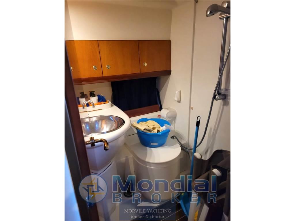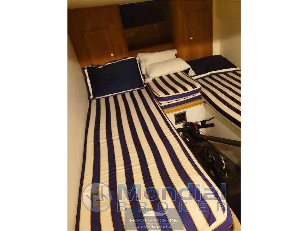 Notas internasCabine: 2 Toilette: 1 Notas de la instrumentaciónImpianto elettronico- Ecoscandaglio - Log-contamiglia - Centrale di navigazione - Plotter - Pilota automatico - Radio - Bussola - Lettore CD - GPS - Altoparlanti di pozzetto - VHF Notas de armamentoCoperture/Tendalini- Tendalino pozzetto Equipaggiamenti Elettrici - Presa corrente a terra - Generatore: 4 KW Equipaggiamenti interni - Elica di prua - Pompa di sentina elettrica - Forno - Pompa di sentina manuale - Microonde - WC marino - Aria condizionata - WC elettrico - Riscaldamento - Acqua calda - Frigorifero: 2 FRIGORIFERI - Caricabatterie Dotazioni Esterne - Pozzetto in teak: NUOVO 2023 - Doccia pozzetto - Passerella idraulica - Cuscineria pozzetto - Tavolo pozzetto - Scaletta bagno Attrezzatura/Dotazioni - Timone |