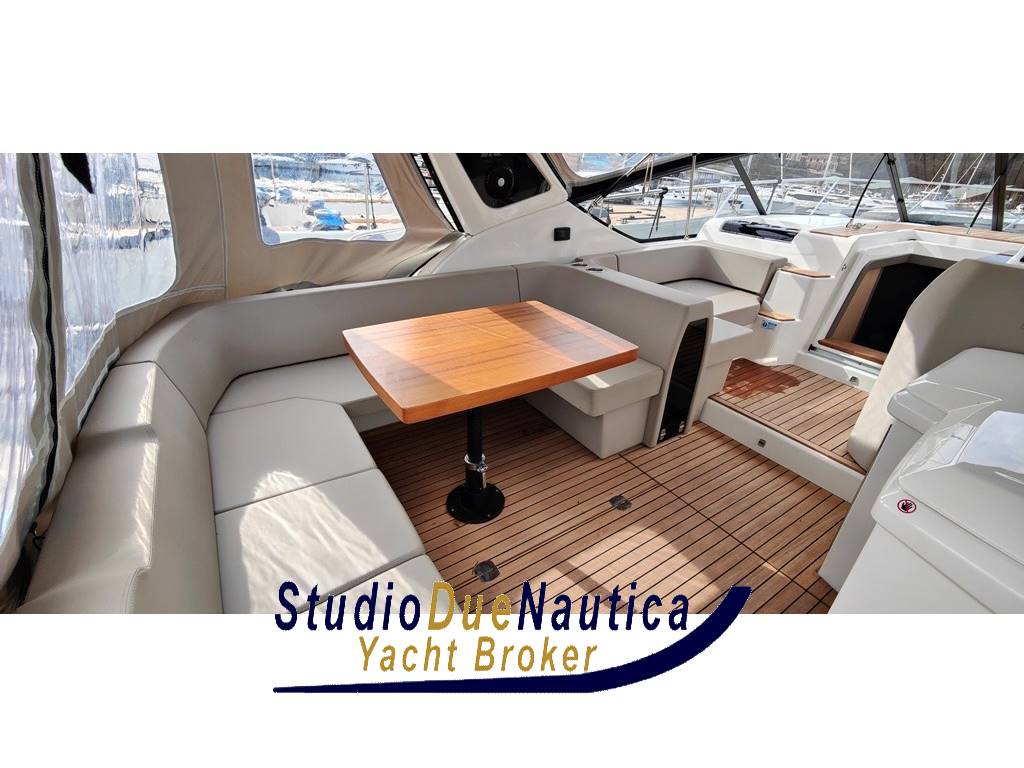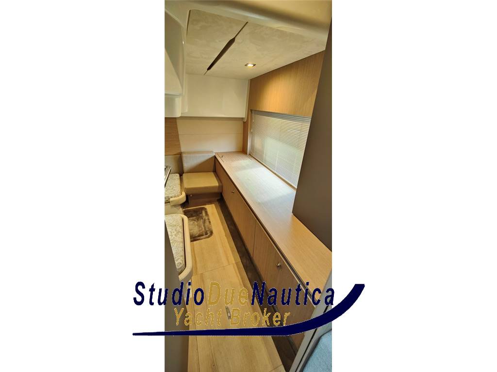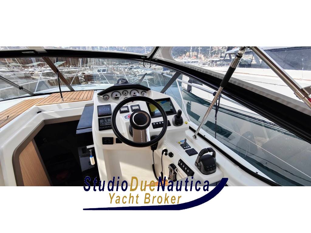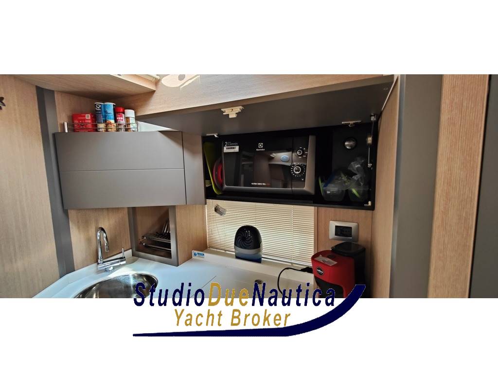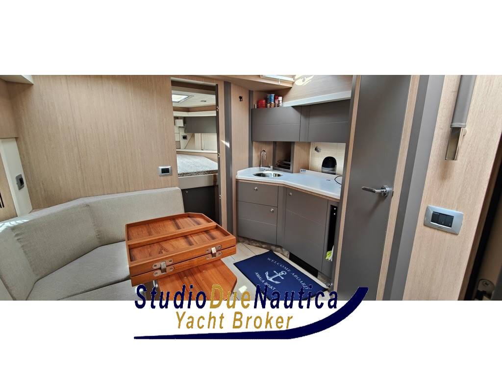 Notas internasCABINA ARMATORIALE A PRUA CABINA OSPITI CON DUE LETTI IN PIANO BAGNO CON DOCCIA INTERNI RAFFINATI VERSIONE DELUXE Notas de la instrumentaciónJOYSTICK + Cruise control + Single lever control + TripELICA PRUA PILOTA AUTOMATICO Garmin GPS/CHARTPLOTTER a colori + RADAR Garmin display 10" Multistrumento DTS (temperatura-profondità-velocità) Computer + Power trim assistance Correttori di assetto a lama Volvo Penta Telecomando verricello con contametri integrato V.H.F./DSC Garmin Bussola magnetica Timoneria idraulica Easy connect Volvo Penta Notas de armamentoARIA CONDIZIONATA 16.000 BTU, con pompa di caloreGENERATORE 3,5 KW GRILL ELETTRICO ESTERNO POZZETTO IN TEAK BOILER VERRICELLO ELETTRICO WC MARINO ELETTRICO IMPIANTO TV CON TV LED SALONE E PREDISPOSIZIONE CABINE LUCI SUBACQUE CAPOTTINA COMPLETA RADIO FUSION CON COMANDO NEL POZZETTO CON CASSE ALTOPARLANTI E SUBWOOFER FRIGO INTERNO E FRIGO ESTERNO FORNO MICROONDE SERBATOIO ACQUE NERE IMPIANTO ACQUA DISTRIBUZIONE DIRETTAMENTE DALLA BANCHINA PLANCETTA IN TEAK Ancora Bruce 15 Kg Catena 50 m - 8 m Acque grigie: impianto raccolta doccia Allarme acustico/luminoso per acqua in sentina Doccia pozzetto e Doccia a Prua Cuscino prendisole a prua + portaoggetti + copertura Tavolo pozzetto in teak trasformabile in prendisole, con cuscino Cabine con tende Veneziane, zanzariera oscurante su passo uomo cabina prua; zanzariere su oblò 2 oscuranti nei saloni Caricabatterie automatico 35 Ah 3 uscite Coperta antifiamma Estintori:n°2 automatici nel vano motori +n°1 manuale pozzetto Porta parabordi n.6 inox a poppa Presa corrente banchina 32 Ah con cavo di collegamento TERGICRISTALLI |