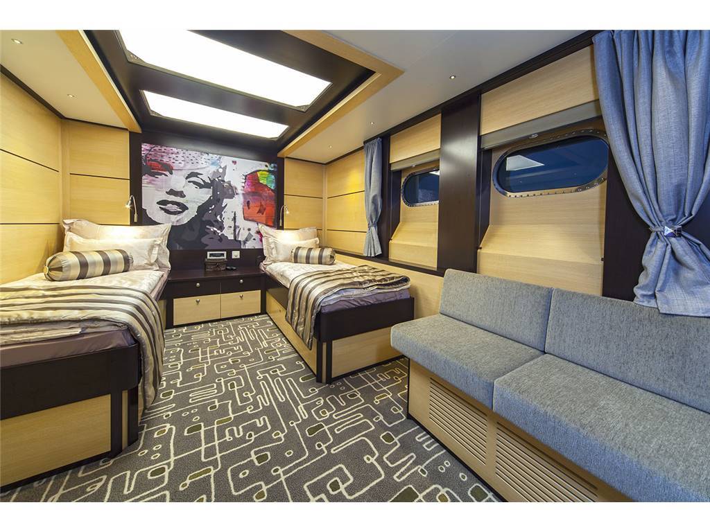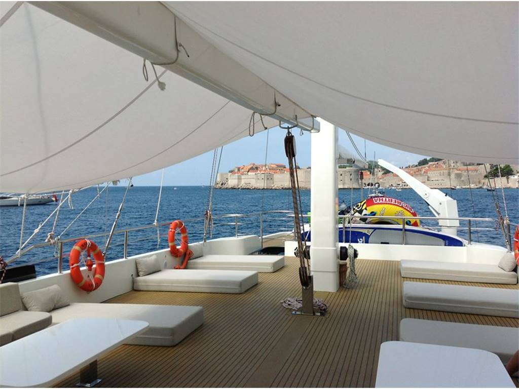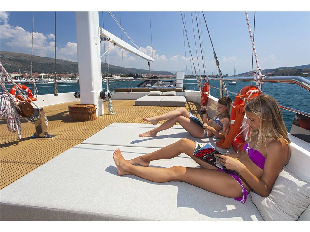 Notas internasYacht a vela di lusso vanta un design raffinato e di alta qualità degli arredi. Inondato di luce naturale, il salone è caratterizzato dall’uso di legno scuro e mobili in colori chiari, creando un ambiente confortevole e rilassante per gli ospiti a bordo. Il salone è suddiviso in zona pranzo formale, zona relax con il bar e dotato di tutti comfort moderni per un soggiorno piacevole: TV al plasma, CD e DVD lettore, Playstation e l’accesso ad Internet. Tutte le cabine completamente climatizzate e dotate del proprio bagno privato, cassetta di sicurezza, interfono e servizio in camera.