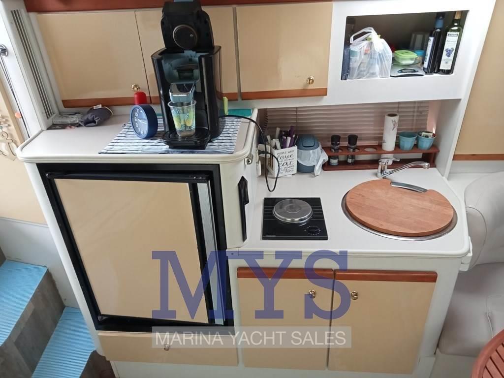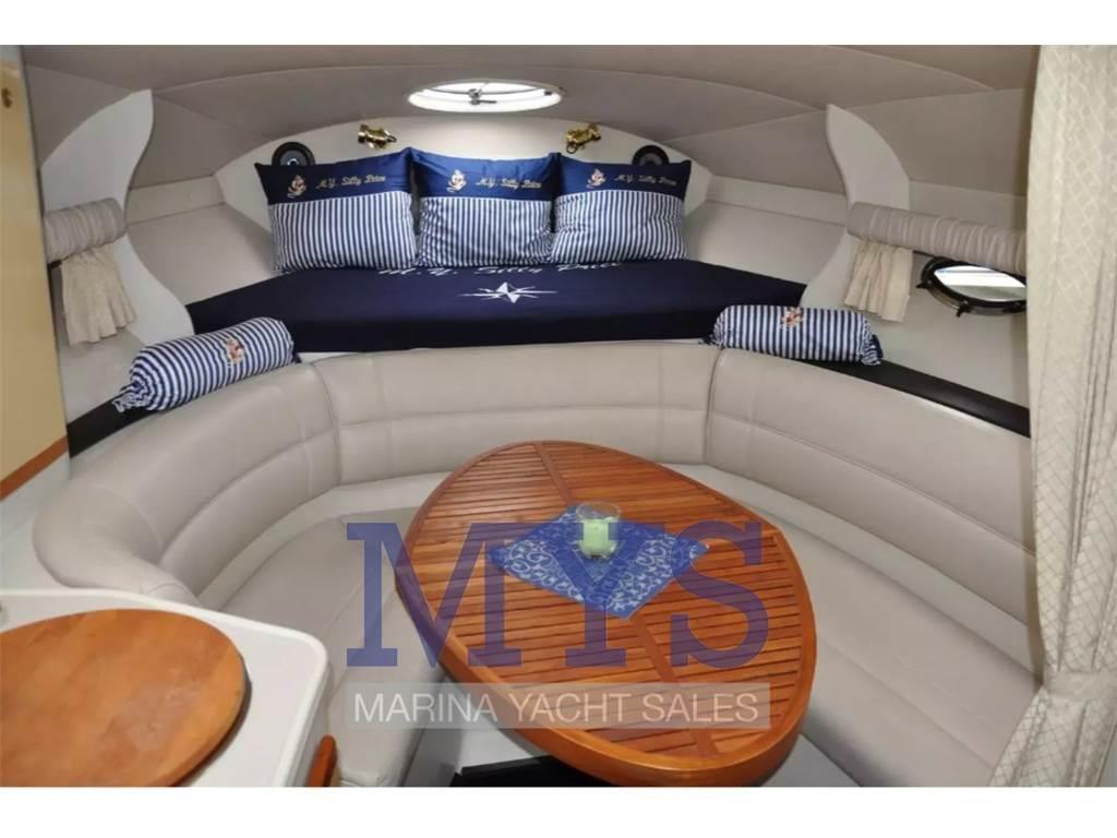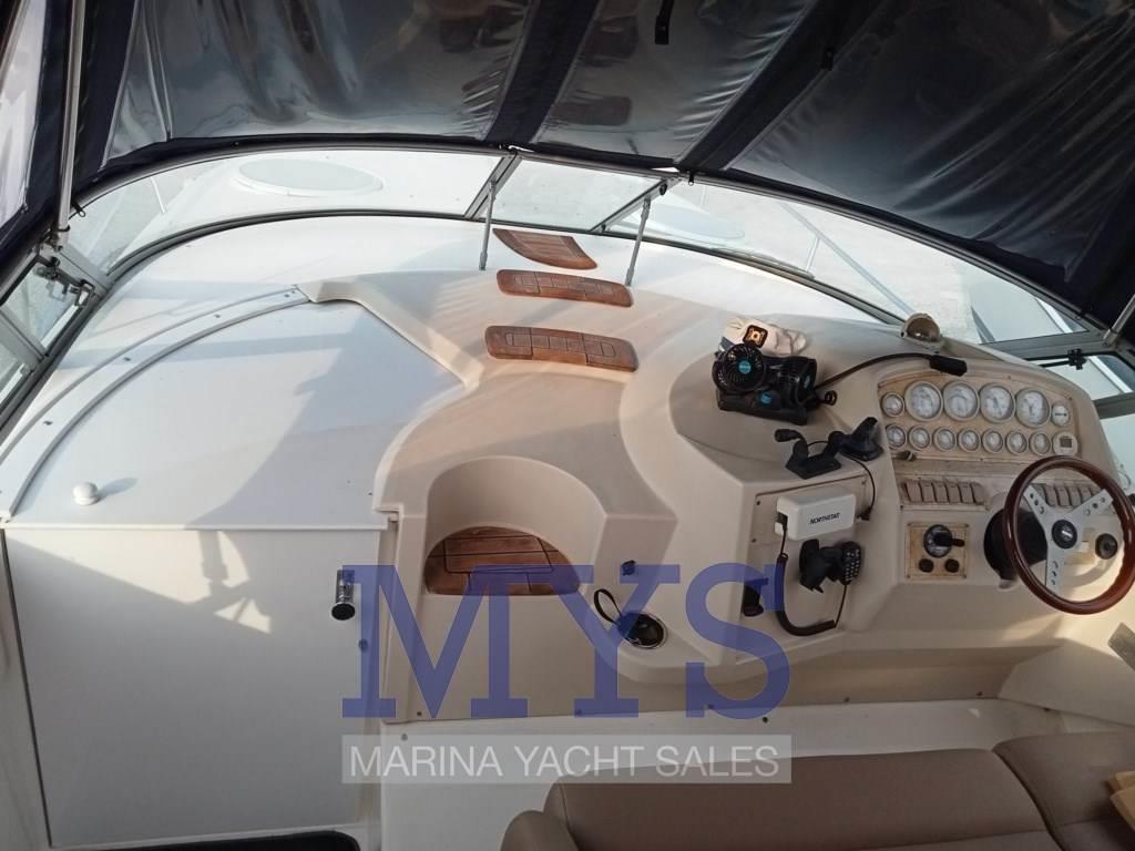 Notas internas1 Cabina matrimoniale di poppa con letto alla francese 1 Cucina completa di lavandino,fornello e frigo 1 Bagno completo di lavabo,doccia e WC marino elettrico Notas de la instrumentaciónAllarme motoreAltoparlanti Aria condizionata Autoclave Batterie Boiler Bussola Caricabatterie Doccia esterna Ecoscandaglio Elica di prua Frigorifero esterno Flap idraulici GPS Indicatori Flaps Impianto acque nere Inverter Luci di cortesia Salpancora Elettrico Stereo Tromba VHF Notas de armamentoAncoraBimini Copripozzetto Cuscineria completa Lavandino nel Pozzetto Pavimento interno in legno Rollbar Serbatoio Acque Nere Scaletta da bagno Tavolo pozzetto Tendalino |