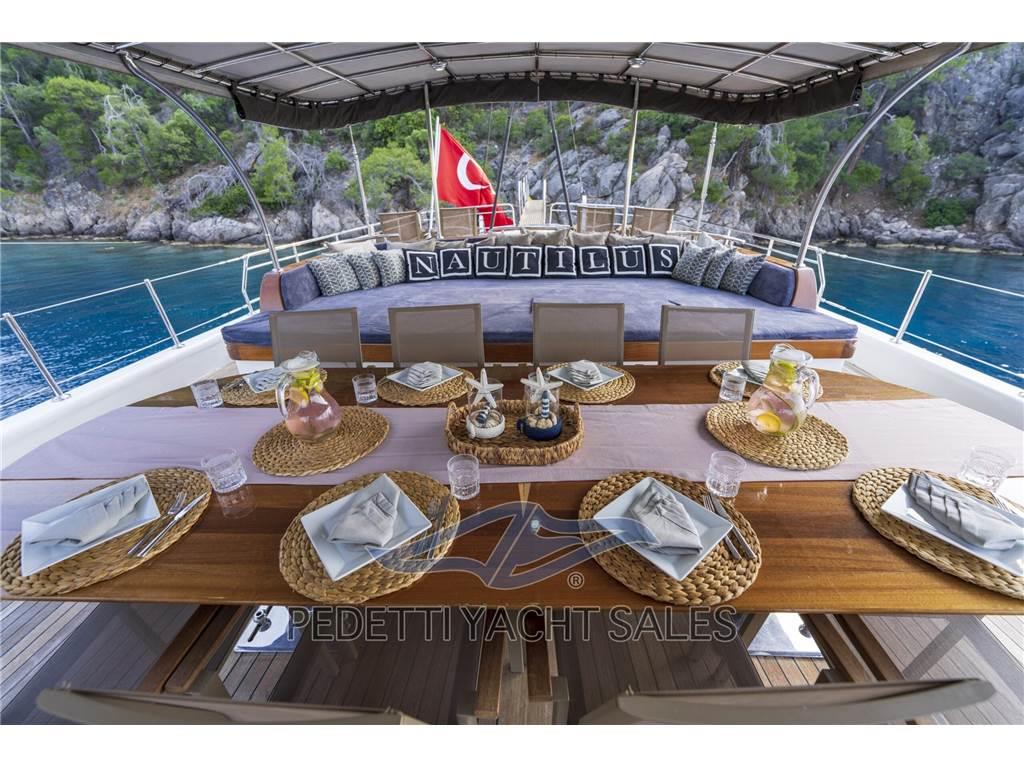Notas internas2 Matrimoniale italiana, 2 Doppia in piano, 3 Cabina equipaggio, 2 Toilette, 1 Toilette con doccia, 1 Dinette, 1 Cucina, 2 Salone, 2 Toilette Equipaggio, 1 Toilette doccia no bidet, 1 Dinette Trasformabile