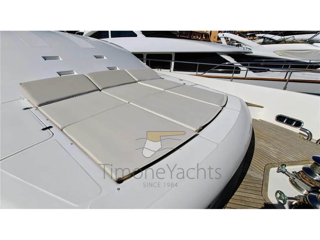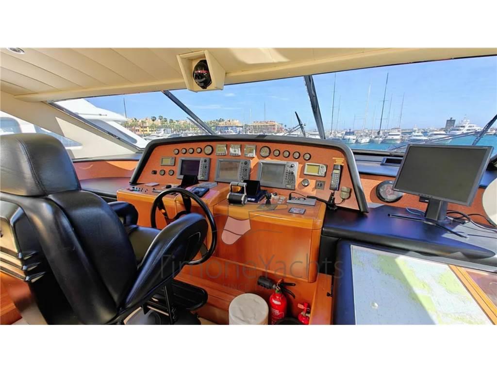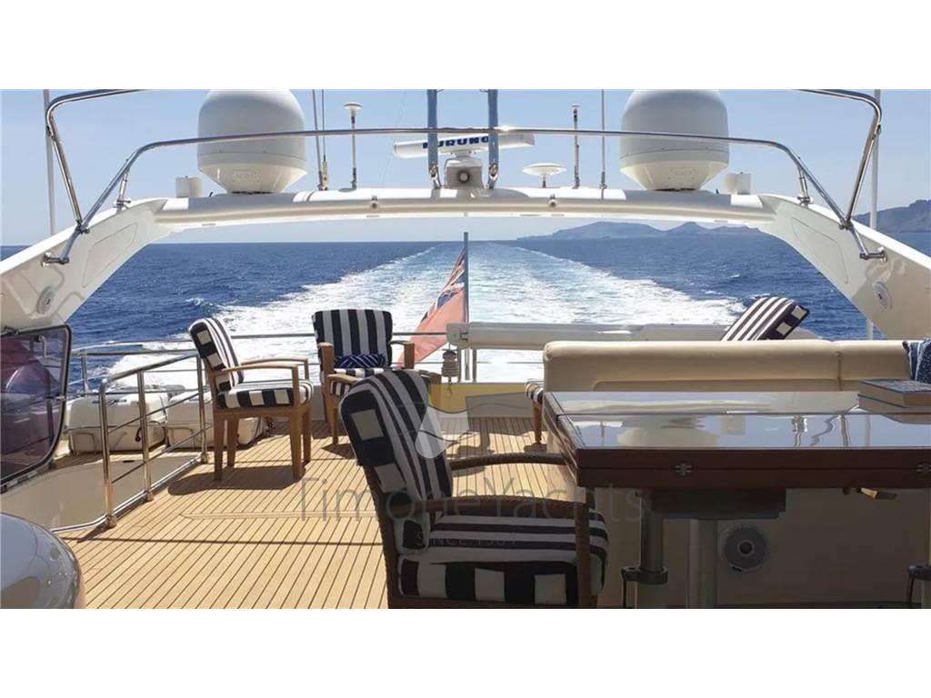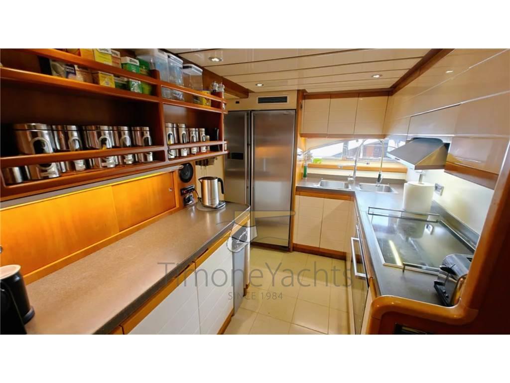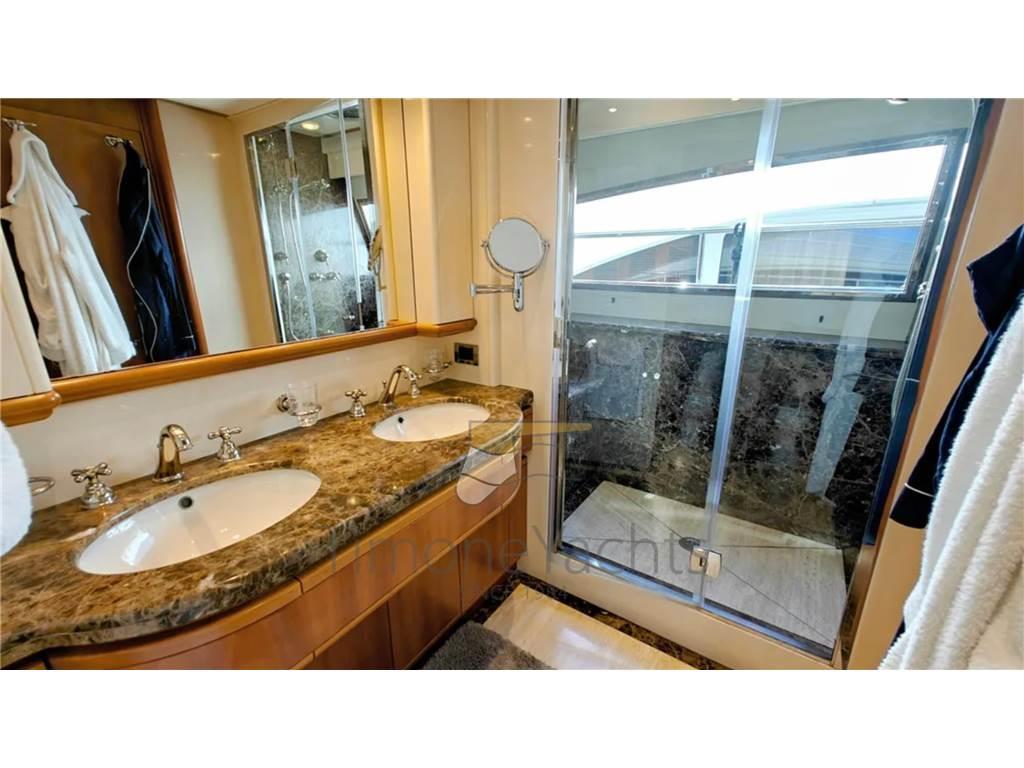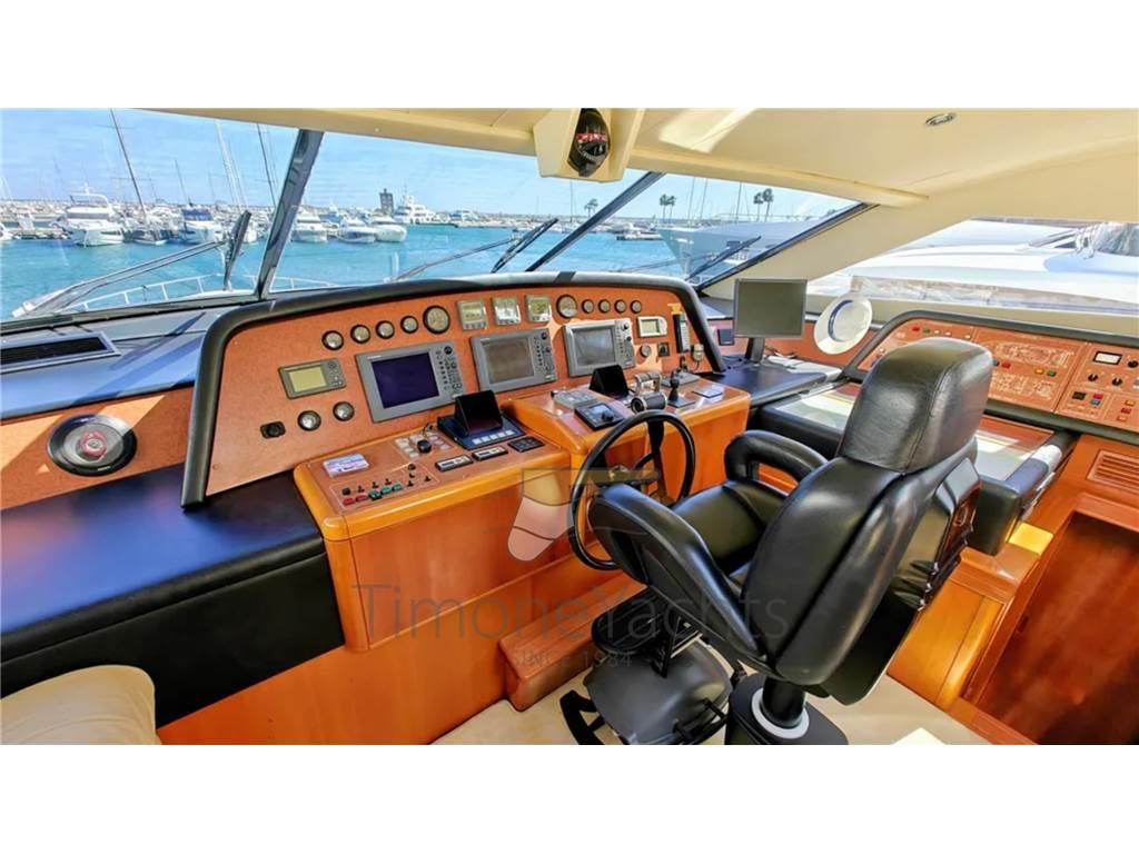 Notas de armamentoAltoparlanti, Aria condizionata (160,000 BTU), Asciugatrice, 2 Bimini, Boiler, Collegamento internet, Congelatore, Cucina, Cuscineria completa, Cuscineria di poppa, Cuscineria di prua, Cuscineria fly, Cuscineria Pozzetto, Dissalatore, Forno, 2 Frigorifero esterno, Frigorifero interno, Ghiacciaia, Home Theater, ICE Maker, Inverter, Lavastoviglie, Lavatrice, Microonde, Pavimento interno in legno, Piastra in vetroceramica, Prese interne 12v, Prese interne 220v, Radio AM/FM, Serbatoio Acque Nere, 6 TV, WC marino elettrico, Winecooler