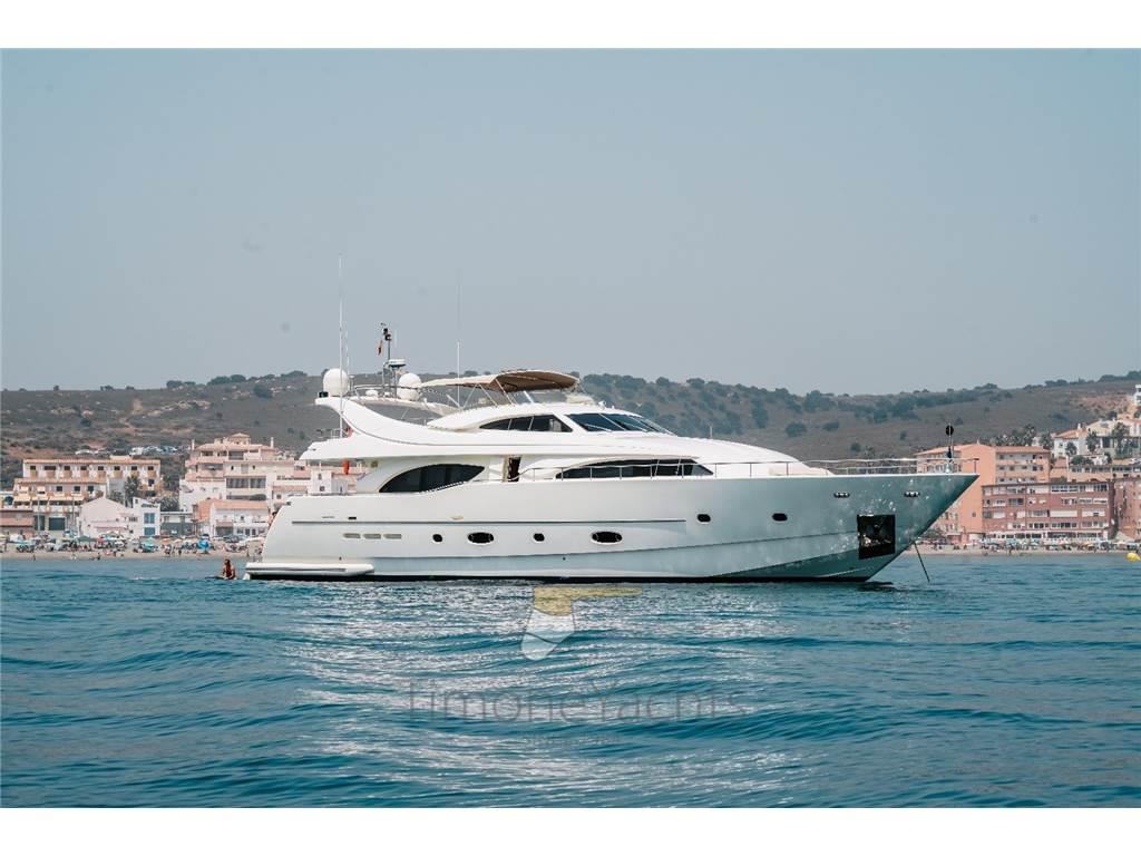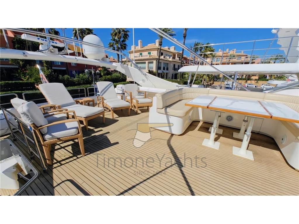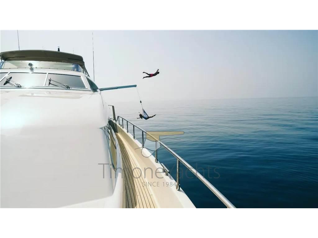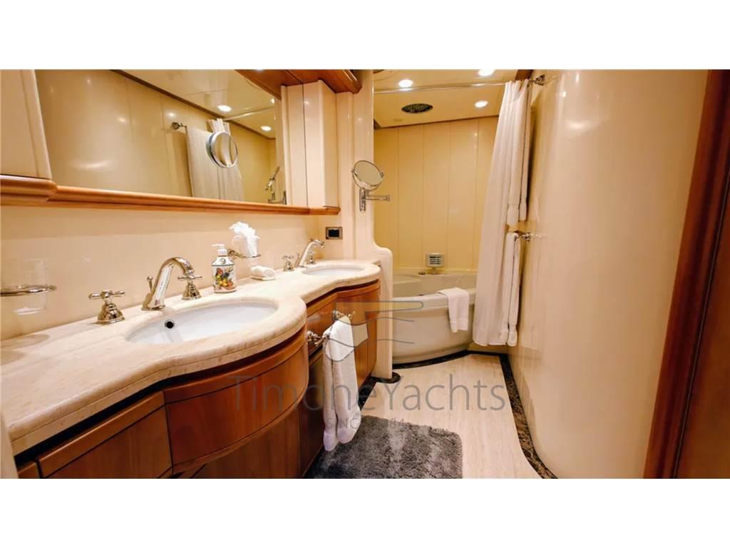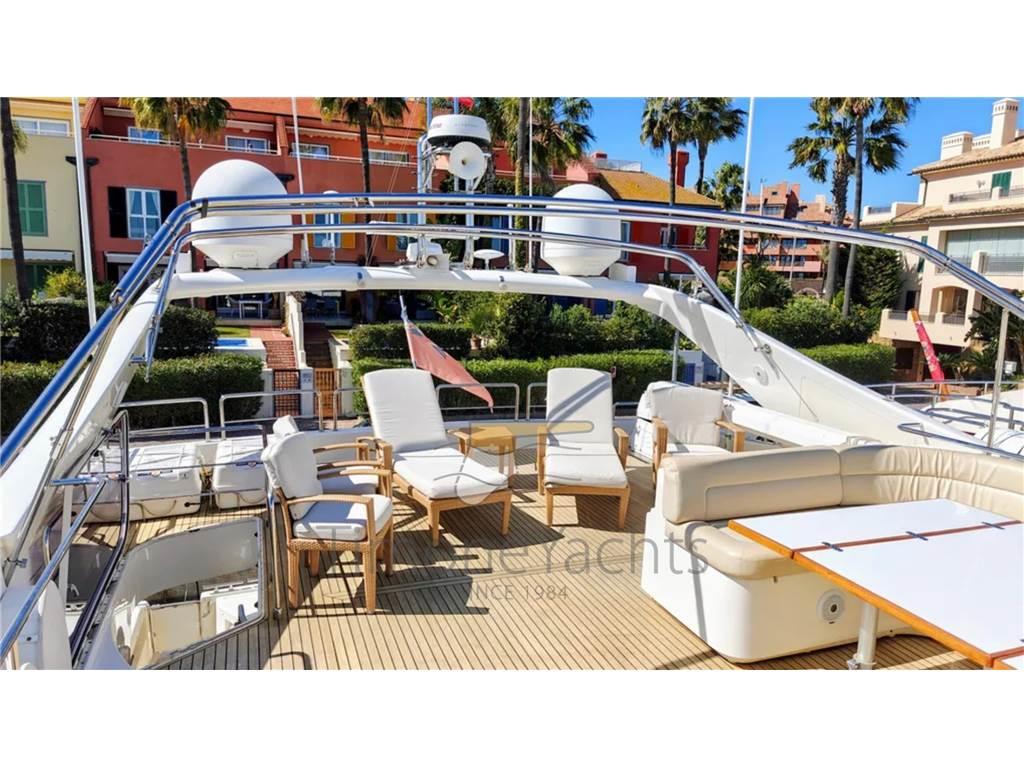 Notas de armamentoAltoparlanti, Aria condizionata (160,000 BTU), Asciugatrice, 2 Bimini, Boiler, Collegamento internet, Congelatore, Cucina, Cuscineria completa, Cuscineria di poppa, Cuscineria di prua, Cuscineria fly, Cuscineria Pozzetto, Dissalatore, Forno, 2 Frigorifero esterno, Frigorifero interno, Ghiacciaia, Home Theater, ICE Maker, Inverter, Lavastoviglie, Lavatrice, Microonde, Pavimento interno in legno, Piastra in vetroceramica, Prese interne 12v, Prese interne 220v, Radio AM/FM, Serbatoio Acque Nere, 6 TV, WC marino elettrico, Winecooler