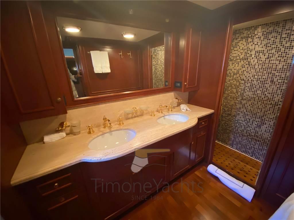 Notas internasNotas de la instrumentación3 Comando motori elettronico (main helm + 2 side wings), GPS, Pilota automatico, Plotter, Radar, Radio VHF, Sedile Copilota.Notas de armamentoAllestimento tecnico e di coperta:Camminamenti laterali in teak, Doccia esterna, Elica di poppa - stern thruster, Elica di prua - bow thruster, Fari fissi a poppa, Faro orientabile, Flap idraulici, Garage per tender (garage only for jetski and beach club, tender on fly), Gruette per tender su fly, Impianto antincendio, Indicatori Flaps, Lavaggio catena, Lavandino nel Pozzetto (on fly), Luci di cortesia, Luci subacquee, Passerella, 2 Porta laterale, Pozzetto Teak, Presa 220V banchina, Presa acqua banchina, Stabilizzatori (underway fins), Tavolo pozzetto, 2 Winch tonneggio di poppa, 2 Winch tonneggio di prua. Dotazioni domestiche di bordo: Aria condizionata, BBQ/ Grill, Clima reversibile, Impianto acque nere, Pavimento interno in legno, Prese interne 12v, Prese interne 220v, Serbatoio Acque Nere, 5 WC marino elettrico (+ crew). Intrattenimento: Altoparlanti, Antenna Satellitare TV, DVD, Home Theater, Impianto TV, Meccanismo saliscendi per TV, Radio AM/FM, 5 TV. Cucina ed elettrodomestici: Congelatore, Forno, Frigorifero esterno, Frigorifero interno, ICE Maker, Lavasciuga, Lavastoviglie, Piastra elettrica. Tappezzerie: Cuscineria completa, Cuscineria di poppa, Cuscineria di prua, Cuscineria fly, Cuscineria Pozzetto, Oscuranti. |