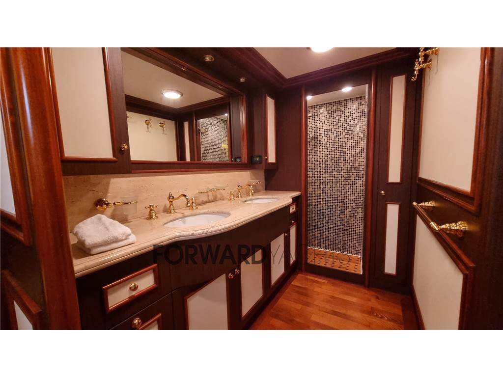 Notas internas- Cabina Armatoriale matrimoniale a centro barca e bagno privato completo; - Cabina VIP matrimoniale a prua e bagno privato completo; - N.2 Cabine ospiti doppie con letti singoli e rispettivi bagni privati completi; - Area equipaggio composta da due cabine e due bagni. Notas de la instrumentaciónStrumentazione :- Bussola - Radio VHF - Comandi verricello - Barometro - Radar - Ecoscandaglio - GPS - Plotter - Pilota automatico - Comando elica di prua Notas de armamentoAccessori :- Stabilizzatori elettro - idraulici; - Elica di prua - Elica di poppa - Ponte in teak - Timoneria idraulica - Timoni in acciaio - Garage Tender - Luci subacquee - Gru per tender - Winch elettrici a poppa - Verricello - Doccia esterna - Aria condizionata in tutti gli ambienti |