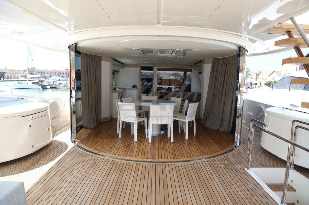 Notas internasNotas de la instrumentaciónAngolo barra, Bussola, Comando motori elettronico, Ecoscandaglio, GPS, Pilota automatico, Radio VHF.Notas de armamentoAllestimento tecnico e di coperta:Allarme sentina, Camminamenti laterali in teak, Elica di poppa - stern thruster, Pompa di sentina automatica, Salpa Ancore Elettrico. Dotazioni domestiche di bordo: Aria condizionata, BBQ/ Grill, WC marino elettrico. Dotazioni di sicurezza: Dotazioni di sicurezza entro 50 miglia. Intrattenimento: Altoparlanti, DVD, Impianto TV, Radio AM/FM, TV. Cucina ed elettrodomestici: Congelatore, Cucina, Fornello, Forno, Frigorifero esterno. Tappezzerie: Cuscineria completa, Tendalino. |