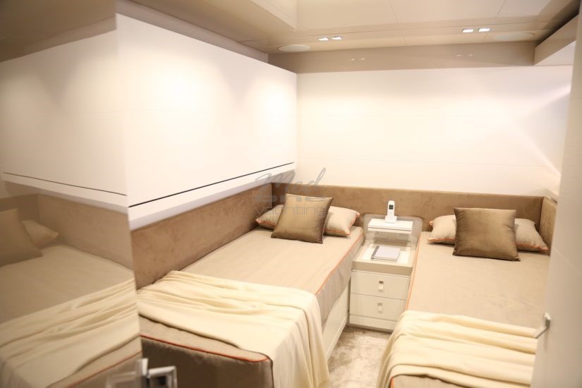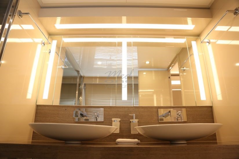 La linea delle finestre continue che vanno da poppa a prua danno a questo super yacht un aspetto leggiadro. Quelle sottocoperta invece sono un'assoluta novità nel mercato: permettono infatti una magnifica vista filo acqua e danno luminosità alle stanze. |
