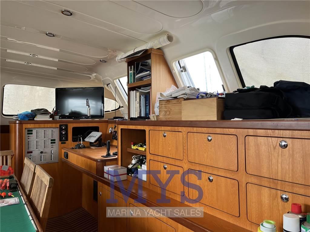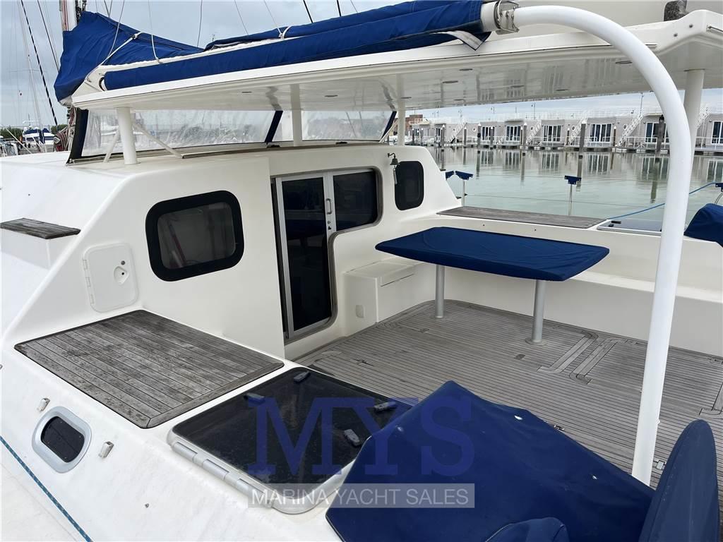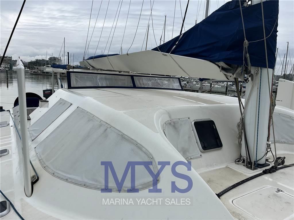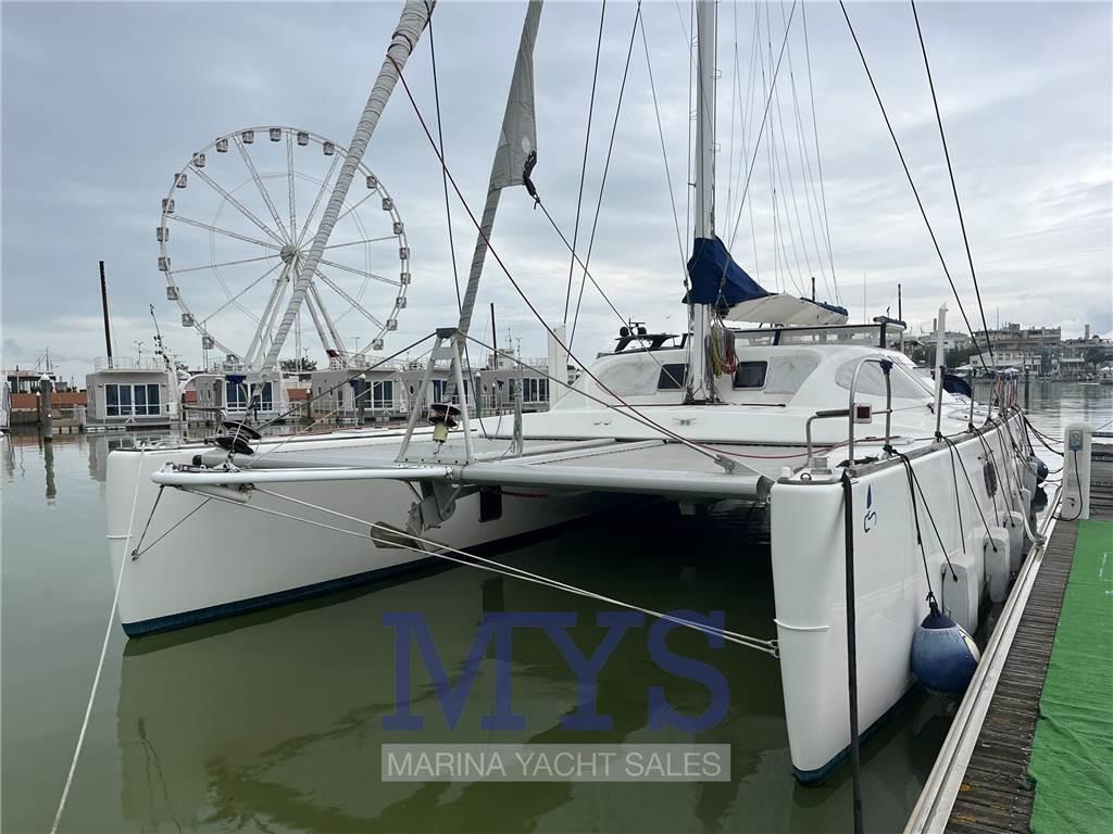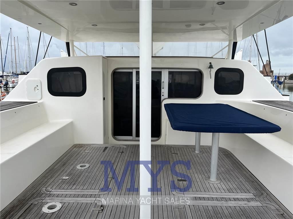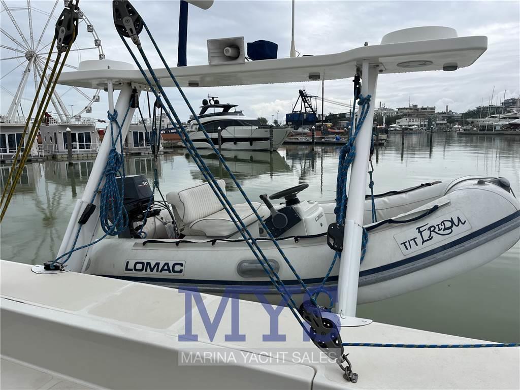Notas internas2 cabine per scafo, ognuna con il proprio bagno privato Dinette con tavolo centrale Cucina ad angolo dotata di piano cottura professionale, 2 frigo e ghiacciaia Stazione di guida interna composta da: manette elettroniche - joystick - plotter Garmin - vhf Notas de la instrumentaciónBussola (n.3)Plotter (n.3) Eco Raymarine Log Raymarine Stazione vento Raymarine Autopilota Raymarine VHF (n.3) Manette motori elettroniche Volvo (n.3) Vericello elettrico Elica di prua Batterie Caricabatteria (n.2) Inverter Pannelli solari Aria condizionata Riscaldamento Autoclave Boiler acqua calda Doccia esterna Frigo Ghiacciaia Autoclave Radio e stereo Altoparlanti Notas de armamentoRanda steccataGenoa avvogibile Boma park avenue Generatore Dissalatore Impinato aria compressa Winch elettrici (n.4) Cuscineria pozzetto Telo copriconsolle |