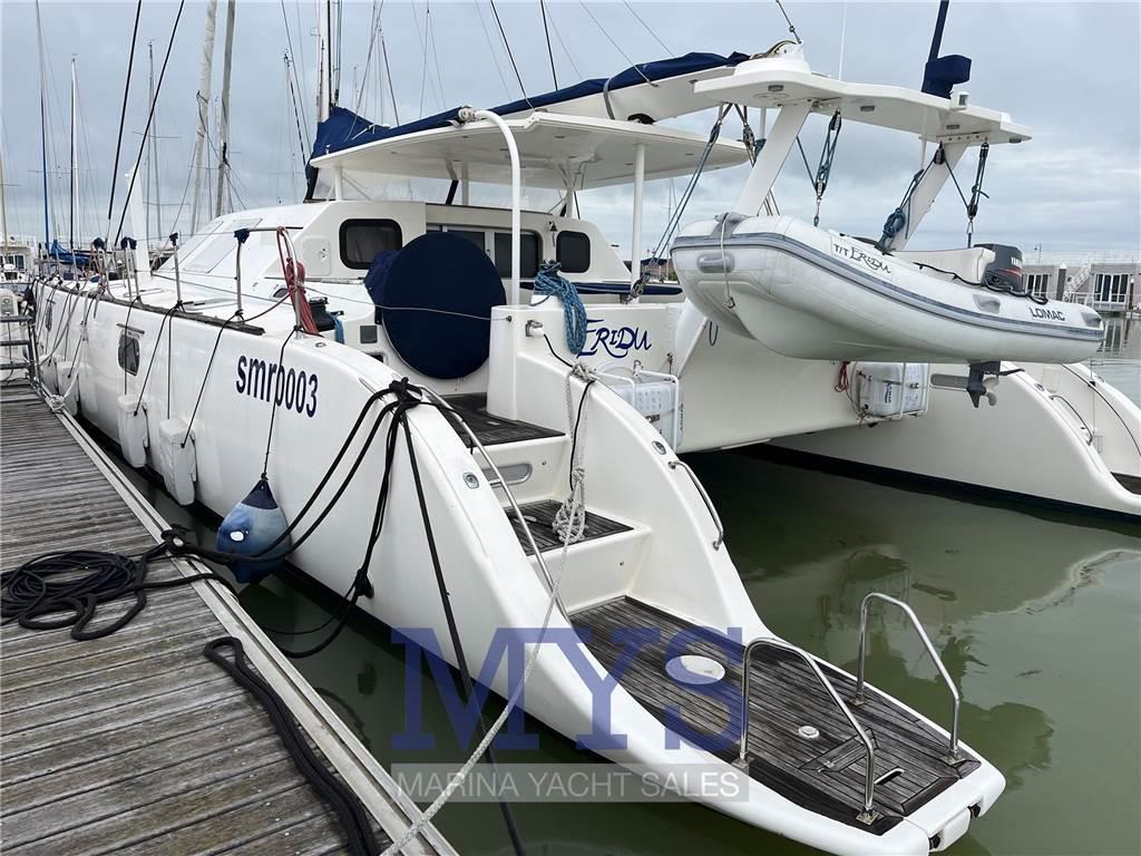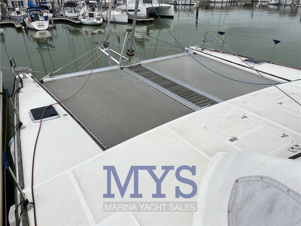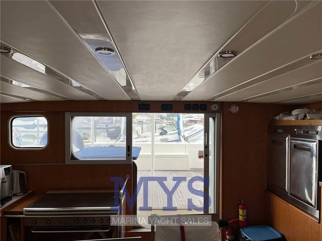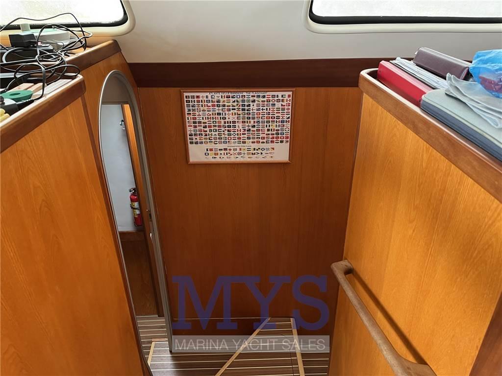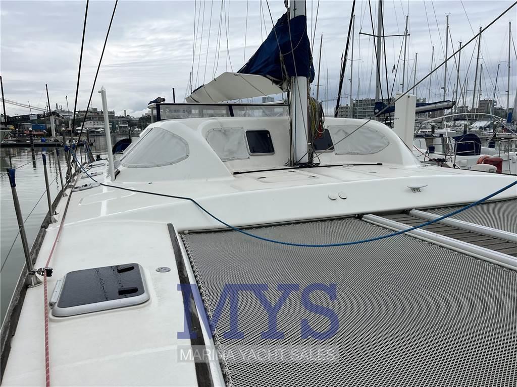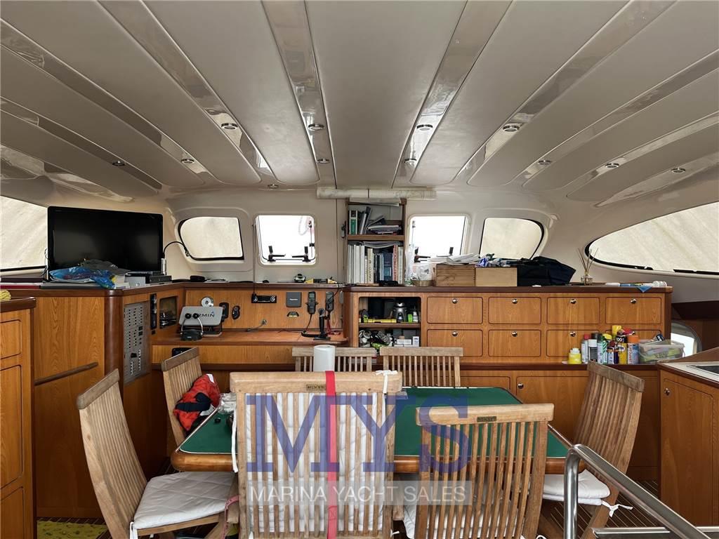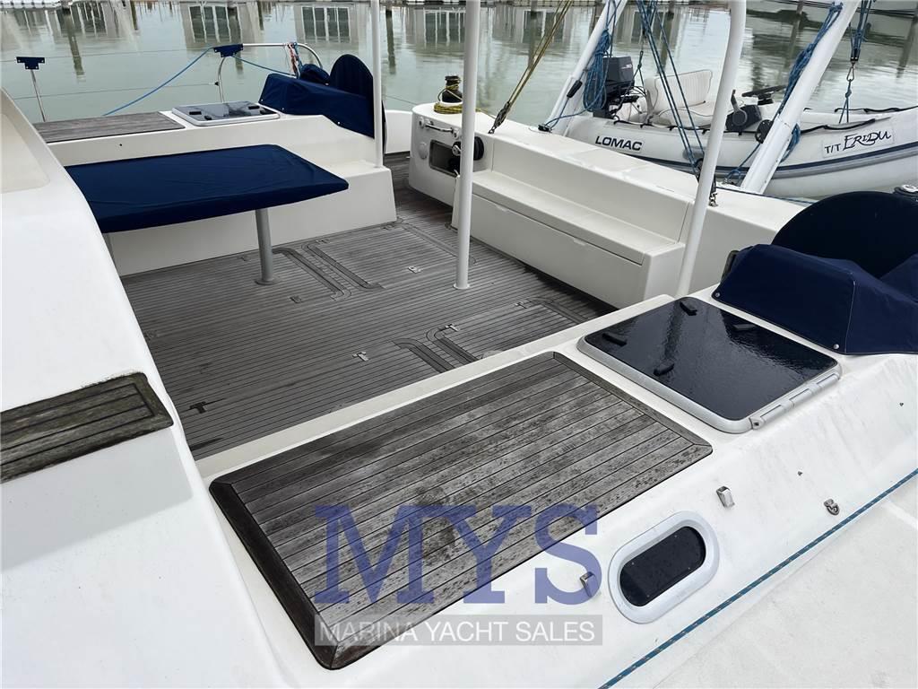 Notas internas2 cabine per scafo, ognuna con il proprio bagno privato Dinette con tavolo centrale Cucina ad angolo dotata di piano cottura professionale, 2 frigo e ghiacciaia Stazione di guida interna composta da: manette elettroniche - joystick - plotter Garmin - vhf Notas de la instrumentaciónBussola (n.3)Plotter (n.3) Eco Raymarine Log Raymarine Stazione vento Raymarine Autopilota Raymarine VHF (n.3) Manette motori elettroniche Volvo (n.3) Vericello elettrico Elica di prua Batterie Caricabatteria (n.2) Inverter Pannelli solari Aria condizionata Riscaldamento Autoclave Boiler acqua calda Doccia esterna Frigo Ghiacciaia Autoclave Radio e stereo Altoparlanti Notas de armamentoRanda steccataGenoa avvogibile Boma park avenue Generatore Dissalatore Impinato aria compressa Winch elettrici (n.4) Cuscineria pozzetto Telo copriconsolle |