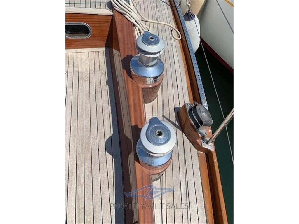 È una barca a vela classica di 47" (m. 14.19) interamente in legno e con scafo in lamellare di mogano, progetto n. 119 di Carlo Sciarrelli.L’armatura |