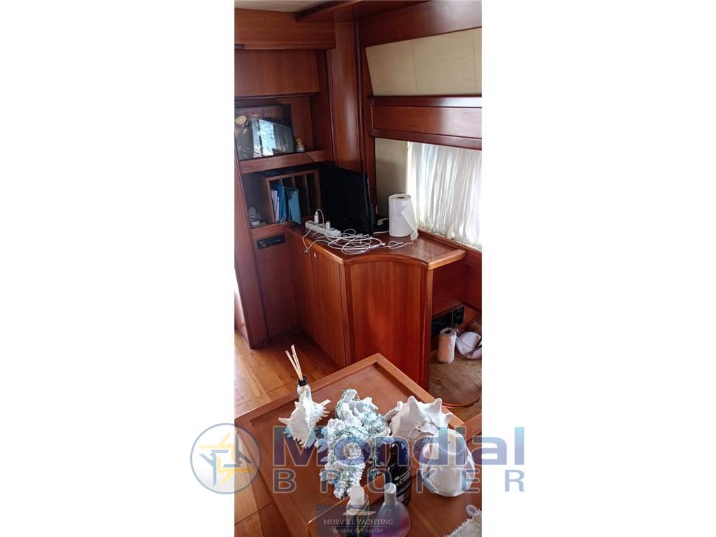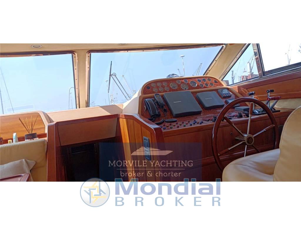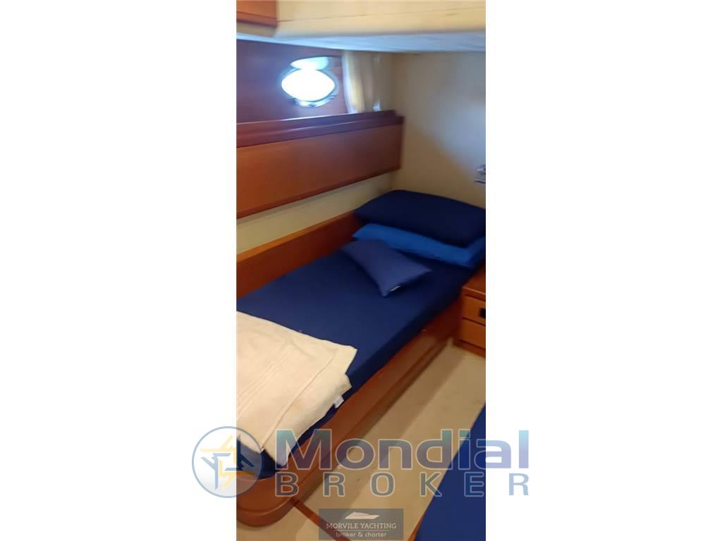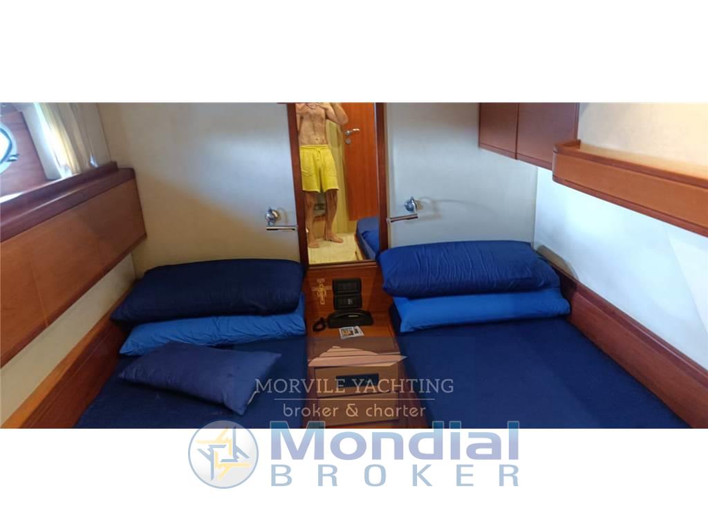 Notas internasCabine: 3 Toilette: 3 Impianto stereo Impianto TV Tv Cabine: 3 Cucina Forno Notas de la instrumentaciónImpianto elettronico- Ecoscandaglio - Radar - Log-contamiglia - Ripetitore(i): STRUMENTI RIPETUTI SU FLY - Impianto TV: ANTENNA TV SAT - Centrale di navigazione - Plotter - Lettore DVD - Pilota automatico - Radio - Bussola - Lettore CD - GPS - Altoparlanti di pozzetto - VHF Pilota automatico Baromentro Bussola Comandi flaps Contamiglia Ecoscandaglio GPS Log Notas de armamentoCoperture/Tendalini- Tendalino pozzetto Equipaggiamenti Elettrici - Presa corrente a terra - Generatore: 9 KW Equipaggiamenti interni - Elica di prua - Pompa di sentina elettrica - Forno - Pompa di sentina manuale - Microonde - WC marino - Aria condizionata: IN TUTTE LE CABINE INCLUSA CABINA MARINAIO - Riscaldamento: IN TUTTE LA CABINE INCLUSA CABINA MARINAIO - Acqua calda - Frigorifero - Congelatore - Caricabatterie Dotazioni Esterne - Pozzetto in teak - Doccia pozzetto - Passavanti in teak - Passerella idraulica - Autogonfiabile - Cuscineria pozzetto: ANCHE PRUA E SU FLY - Tavolo pozzetto Cuscineria Frigorifero esterno Scaletta: 1 Tavolo nel pozzetto |