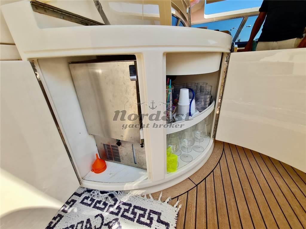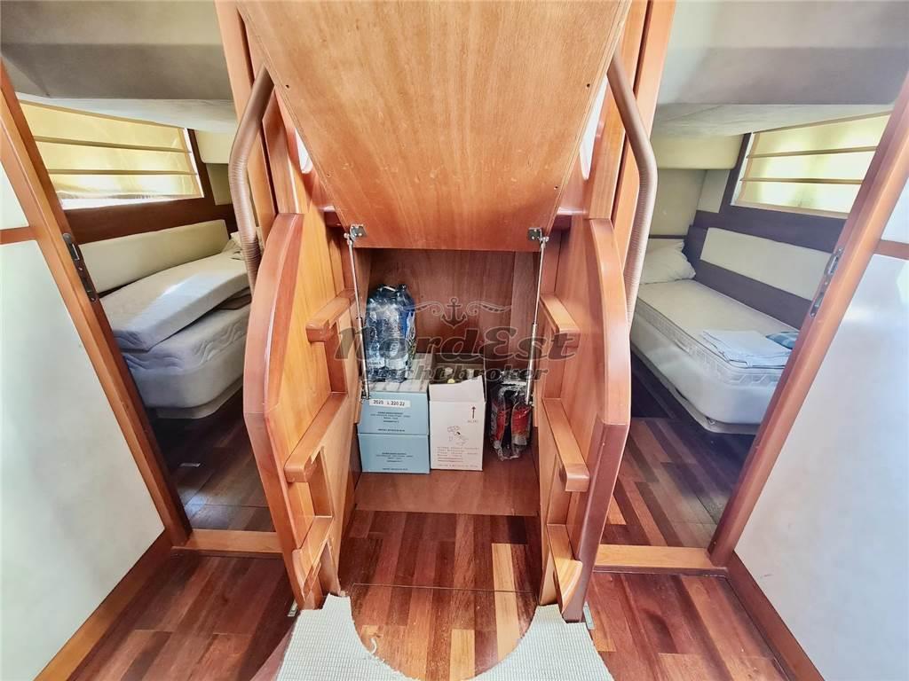 Notas internasAria condizionata: Presente Interni: DESCRIZIONE INTERNI Cabina marinaio molto spaziosa con due letti a castello con entrata privata a poppa. Da considerarsi come una cabina ospiti. ----- Mobile bar Antenna TV satellitare Impianto stereo Impianto TV Tv Bagno equipaggio Bagni: 3 Cabina equipaggio Cabine: 4 Posti letto: 8 Cucina Forno: Presente Congelatore Frigorifero Ice maker Piano Cottura: 1 Notas de la instrumentaciónPilota automatico: Presente Ecoscandaglio: Presente GPS: Presente Plancetta: in teak Radar: Presente Strumenti meteo Vhf: Presente Notas de armamentoDESCRIZIONE IMPIANTISTICA Tender SUR nuovo non incluso nel prezzo di vendita, da trattare separatamente. ----- Impianto antincendio Contacatena Copertura pozzetto Cuscineria prendisole Doccia esterna Elica di manovra a poppa: Presente Elica di manovra a prua: Presente Flaps Frigorifero esterno Luci di cortesia Luci subacquee Riscaldamento Zattera di salvatagio |