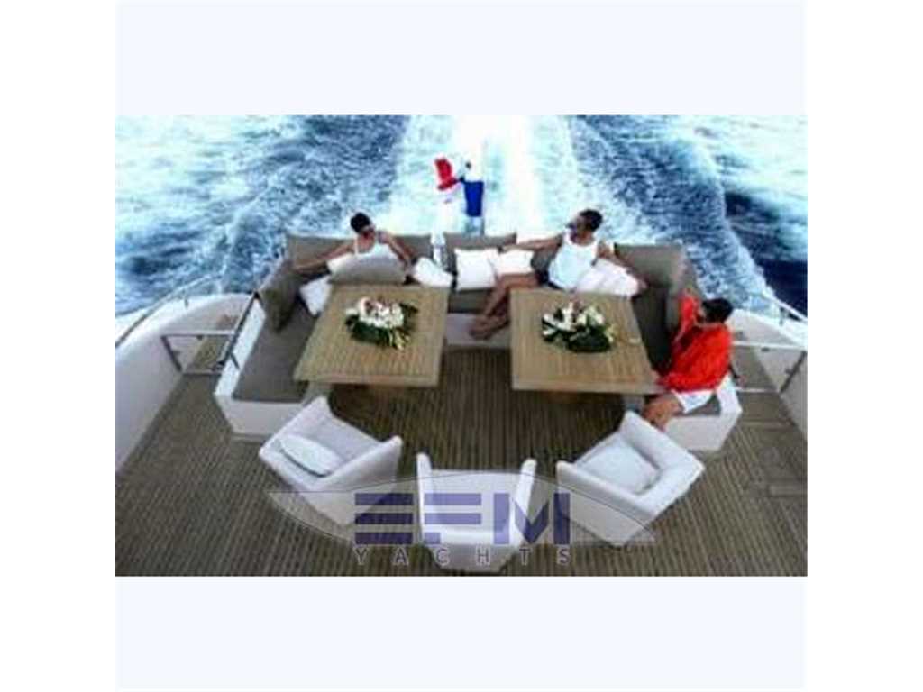 Notas internasThe De Birs 100 Sports Yacht is truly a unique yacht of its kind. The Naval Architecture & Styling was designed by Arrabito Naval Architects out of Livorno, Italy. The interior, designed by H2 Yacht Design out of London, is a rich modern feel that provides luxury and unique multi-functional areas in aft, mini fly bridge and dining areas. The 100 SP has very interesting features with a full beam master suite and the four additional guest rooms. Most interestingly is the bow suit that while it has a split V-berth, it can be put together to become a single double bed. Multi-functional and clever! The overall layout below is very flexible, with double and single beds configuration, and offers the owner 5 cabins that cater to couples, children and VIPs. Unlike most sports yachts, the main level offers a degree of comfort previously unknown in these yachts. Not only does the DeBirs 100 SP provide an open floor plan with bar, entertainment and unique foldable dining and tapas table, but it also separates the crew from the main salon. Grandissimo salone con sala da pranzo con divano 4 sedie e tavolo a dx, ampia dinette a prua con divano semicircolare e tavolo da thè in cristallo e legno, tv al plasma con scala a chiocciola per accendere ponte zone notte, cabione Armatoriale a centro barca con letto matrimoniale bagno con doccia separata, zona scrittoio con tv al plasma, cabina a prua con 2 letti separati trasfornabili in unico letto matrimoniale e con tv e bagno privato con box doccia, 2 cabine ospiti doppie con servizio privato e box doccia e tv, cabina Vip con letto matrimoniale e bagno privato con box doccia separato , alloggio equipaggio a poppa per 3 persone con cucina completa di lavastoviglie e due cabine con grande bagno e doccia separata, locale lavanderia con lavasciuga - Length overall (LOA): 30.48 m (100 ft) Beam overall (BOA): 6.85 m (22.5 ft) Length on water line: 24.63 m (80.81 ft) Depth (D) 3.15 m (10.34 ft) Draft on Max. Displacement (T): * From Base Line 1.2 m (3.40 ft)* From under propellers 2.175 m (7.14 ft) Full load displacement: 94 tons (207,231 lbs) Fuel capacity: 13,300 lt. (3,513 US gal) Fresh water capacity: 2,200 lt. (581 US gal.) Generators: 2 x 27 KWA Engines: 2 x 2000 HP, MTU * Cruising speed: 25 knots * Max speed: 29 knots (+/-5%) Cabins: 5 + Crew Berths: 10 + Crew Building Material: GRP Yacht Design: De Birs Yachts / Arrabito NA Naval Architecture: Arrabito NA Engineering: De Birs Yachts / Arrabito NA Interior Design: Egg & Dart Design Corporation / De Birs Yachts Builder: De Birs Yachts Large lounge and dining room with sofa table and 4 chairs on the right, large dinette in the bow with a semicircular sofa and tea table glass and wood, plasma TV with spiral staircase to light the bridge sleeping areas, cabione amidships with bed bath with separate shower, desk area with plasma TV, forward cabin with 2 twin beds trasfornabili in a single bed and with television and private bathroom with shower, 2 double guest cabins with private bath and shower and TV, walk-VIP with queen bed and private bath with separate shower, aft crew cabin for 3 people with full kitchen with dishwasher and two cabins with large bath and separate shower, laundry room with washer-dryer - Notas de la instrumentaciónThe De Birs 100 Sports Yacht is truly a unique yacht of its kind. The Naval Architecture & Styling was designed by Arrabito Naval Architects out of Livorno, Italy. The interior, designed by H2 Yacht Design out of London, is a rich modern feel that provides luxury and unique multi-functional areas in aft, mini fly bridge and dining areas. The 100 SP has very interesting features with a full beam master suite and the four additional guest rooms. Most interestingly is the bow suit that while it has a split V-berth, it can be put together to become a single double bed. Multi-functional and clever! The overall layout below is very flexible, with double and single beds configuration, and offers the owner 5 cabins that cater to couples, children and VIPs. Unlike most sports yachts, the main level offers a degree of comfort previously unknown in these yachts. Not only does the DeBirs 100 SP provide an open floor plan with bar, entertainment and unique foldable dining and tapas table, but it also separates the crew from the main salon. Grandissimo salone con sala da pranzo con divano 4 sedie e tavolo a dx, ampia dinette a prua con divano semicircolare e tavolo da thè in cristallo e legno, tv al plasma con scala a chiocciola per accendere ponte zone notte, cabione Armatoriale a centro barca con letto matrimoniale bagno con doccia separata, zona scrittoio con tv al plasma, cabina a prua con 2 letti separati trasfornabili in unico letto matrimoniale e con tv e bagno privato con box doccia, 2 cabine ospiti doppie con servizio privato e box doccia e tv, cabina Vip con letto matrimoniale e bagno privato con box doccia separato , alloggio equipaggio a poppa per 3 persone con cucina completa di lavastoviglie e due cabine con grande bagno e doccia separata, locale lavanderia con lavasciuga - Length overall (LOA): 30.48 m (100 ft) Beam overall (BOA): 6.85 m (22.5 ft) Length on water line: 24.63 m (80.81 ft) Depth (D) 3.15 m (10.34 ft) Draft on Max. Displacement (T): * From Base Line 1.2 m (3.40 ft)* From under propellers 2.175 m (7.14 ft) Full load displacement: 94 tons (207,231 lbs) Fuel capacity: 13,300 lt. (3,513 US gal) Fresh water capacity: 2,200 lt. (581 US gal.) Generators: 2 x 27 KWA Engines: 2 x 2000 HP, MTU * Cruising speed: 25 knots * Max speed: 29 knots (+/-5%) Cabins: 5 + Crew Berths: 10 + Crew Building Material: GRP Yacht Design: De Birs Yachts / Arrabito NA Naval Architecture: Arrabito NA Engineering: De Birs Yachts / Arrabito NA Interior Design: Egg & Dart Design Corporation / De Birs Yachts Builder: De Birs Yachts Large lounge and dining room with sofa table and 4 chairs on the right, large dinette in the bow with a semicircular sofa and tea table glass and wood, plas