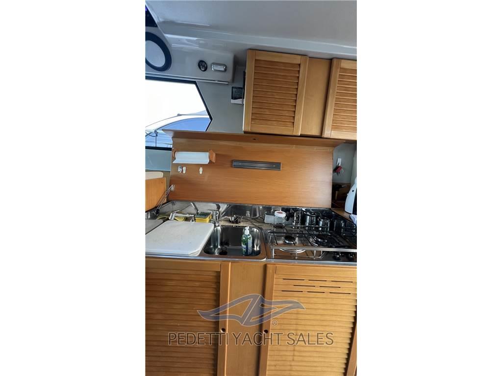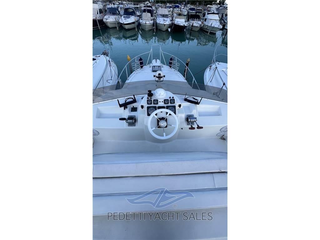 Notas de armamentoAltoparlanti, Aria condizionata, Barometro, Binocolo, Boetta fumogena, Boiler, Cappottina, Carte nautiche, Cassetta di pronto soccorso, Copripozzetto, Cucina, Cuscineria completa, Cuscineria di poppa, Cuscineria di prua (piccola scucitura), Cuscineria fly, Cuscineria Pozzetto, Dotazioni di sicurezza entro 12 miglia, Dotazioni di sicurezza entro 50 miglia, DVD, Fornello, Frigorifero interno, Fuochi a mano a luce rossa, Giubbetti di salvataggio, Impianto TV, Macchina caffè, Prese interne 12v, Prese interne 220v, Radio AM/FM, Razzi a paracadute a luce rossa, Teli copri finestra, Telo Copertura Fly, TV, WC marino manuale, Zattera di salvataggio