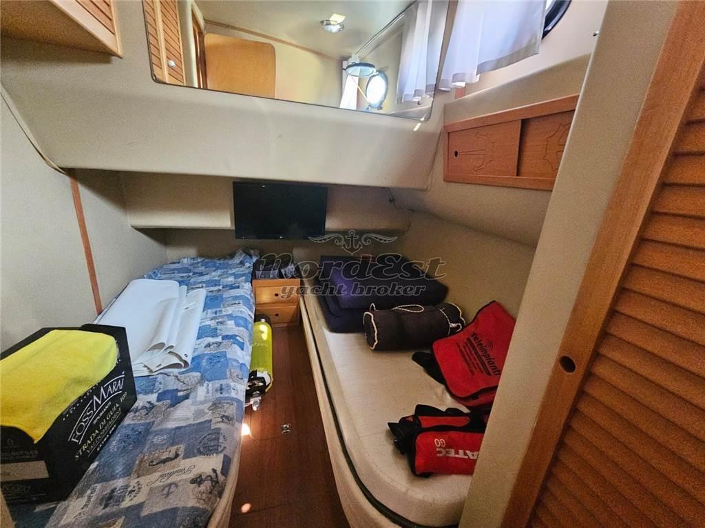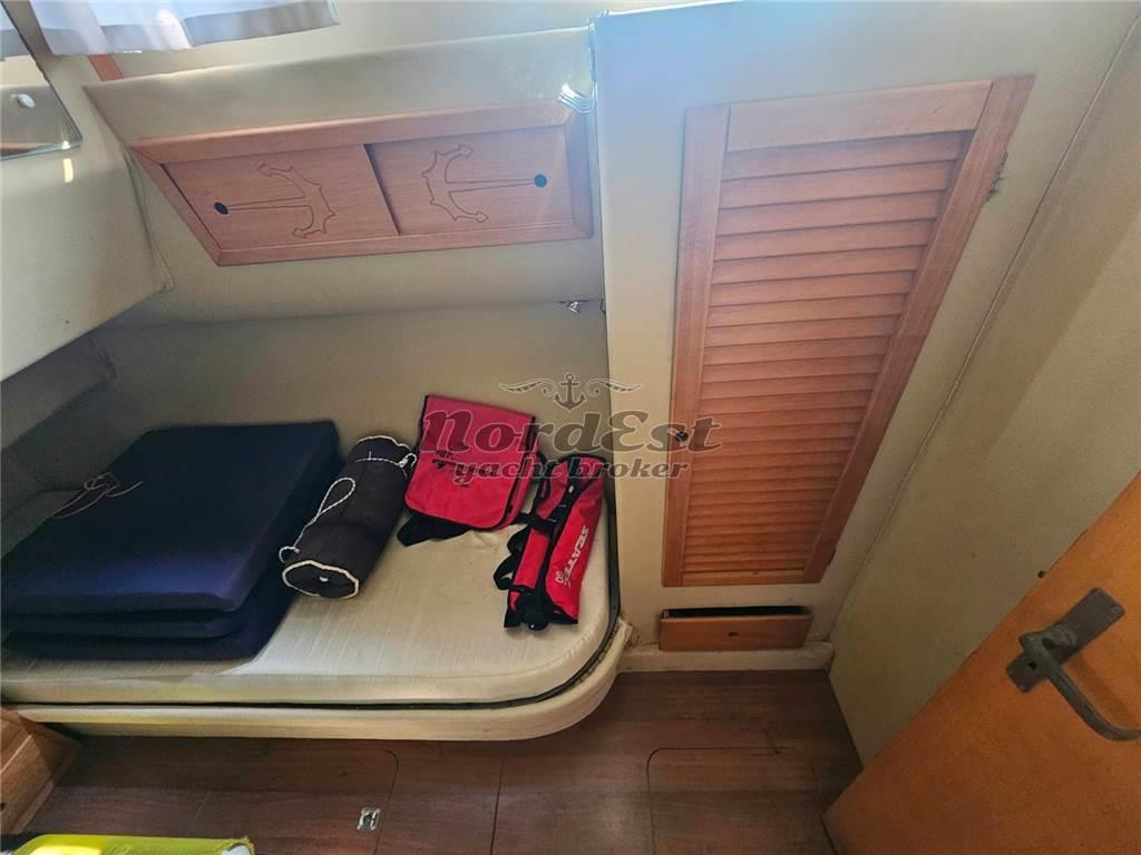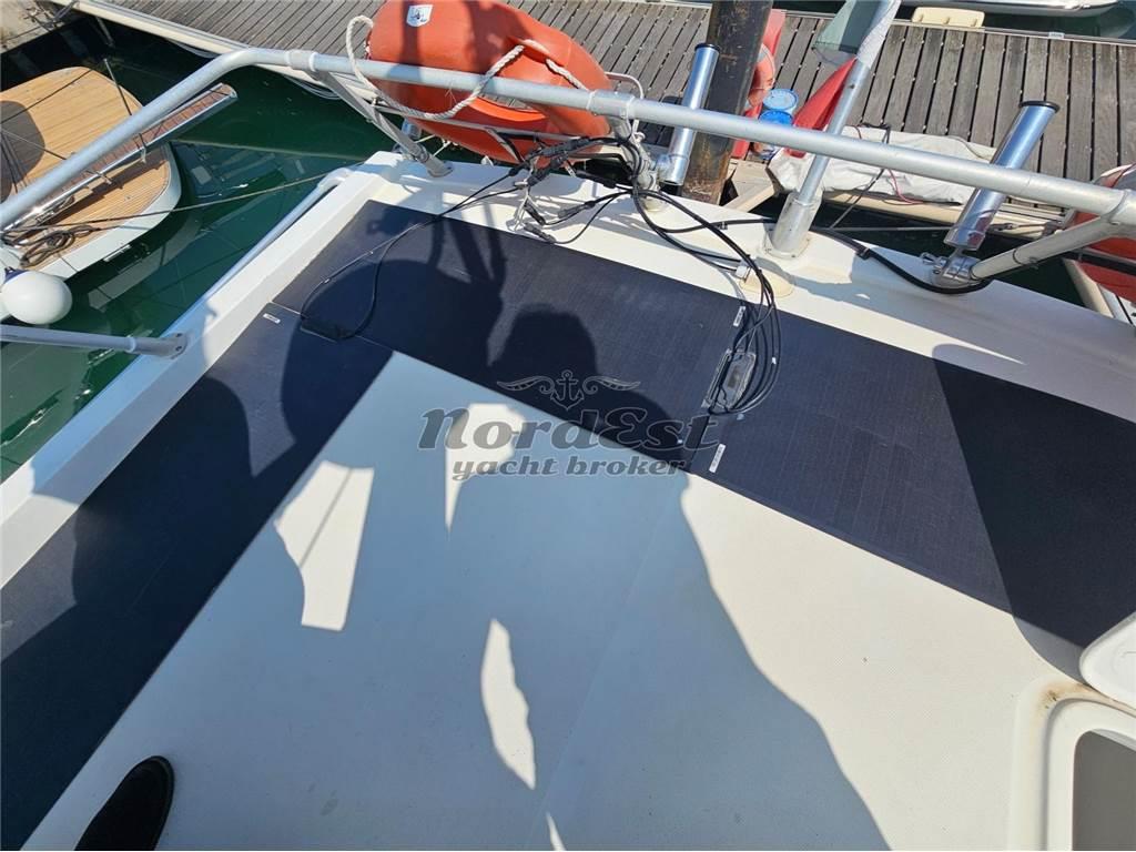 Notas internasImpianto stereo Impianto TV Bagni: 1 Cabine: 3 Posti letto: 5 Cucina Frigorifero Piano Cottura: 1 Notas de la instrumentaciónGarmin GPSMAP1020XS (nuova generazione)Radar Garmin (nuova generazione) Pilota automatico VHF ICOM VHF Simrad con doppio comando (pozzetto + cabina) Impianto allarme: Incendio e allagamento con 3 sensori Impianto TVCC: Con telecamere in sala macchine 2 TV Router 4G WiFi Pilota automatico: Presente Ecoscandaglio: Presente GPS: Garmin Plancetta: Presente Radar: Garmin Strumenti vento Vhf: Presente Notas de armamentoDESCRIZIONE IMPIANTISTICA Elica di prua con doppio comando 3 pannelli solari flessibili Impianto elettrico 230V/12V con alimentatore di banchina per i servizi Batterie:2 x Motori (sostituite nel 2024), 2 x Servizi (sostituite nel 2023), 1 x Elica di prua (sostituita nel 2024) Frigorifero 110 litri (nuovo del 2023) Catena ancora: 70 metri (nuova del 2024) Materasso matrimoniale nuovo Riscaldamento Webasto Calpestio dinette nuovo Plancetta di poppa allungata Luci blu subacquee: 3 x 130W cad. Teloneria: Invernale ed estiva ----- Impianto antincendio Bimini top: si in acciao Copertura pozzetto Cuscineria prendisole Doccia esterna Elica di manovra a prua: Presente Flaps |