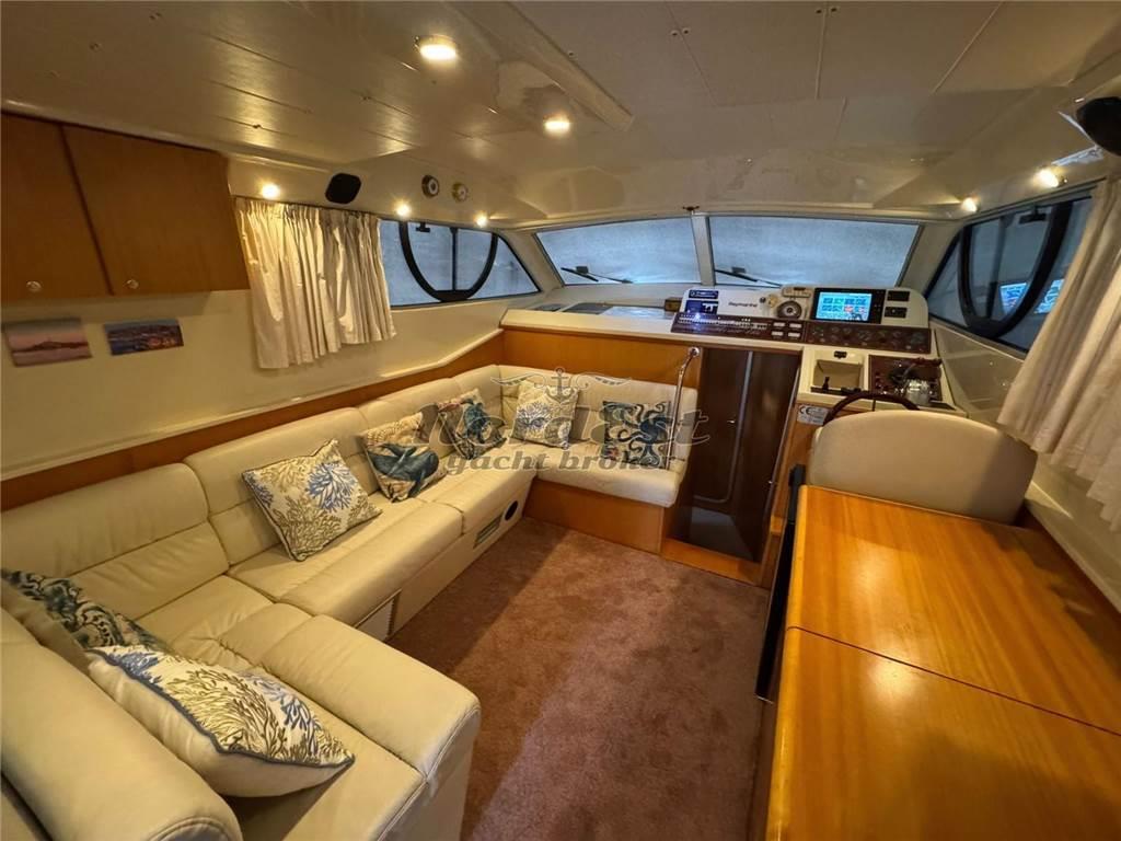 Notas internasAria condizionata: Presente Interni: DESCRIZIONE INTERNI - Cabina di prua matrimoniale - Cabina ospiti letti in piano - Due servizi - Dinette trasformabile - Cucina tre fuochi ----- Impianto stereo Impianto TV Tv Bagni: 2 Cabine: 2 Cucina Frigorifero Notas de la instrumentaciónPilota automatico: Presente Ecoscandaglio: Presente GPS: Presente Vhf: Presente Notas de armamentoImpianto antincendio Cuscineria prendisole Doccia esterna Elica di manovra a prua: Presente Flaps Luci di cortesia |