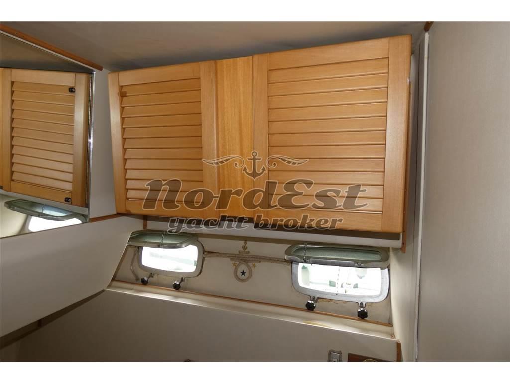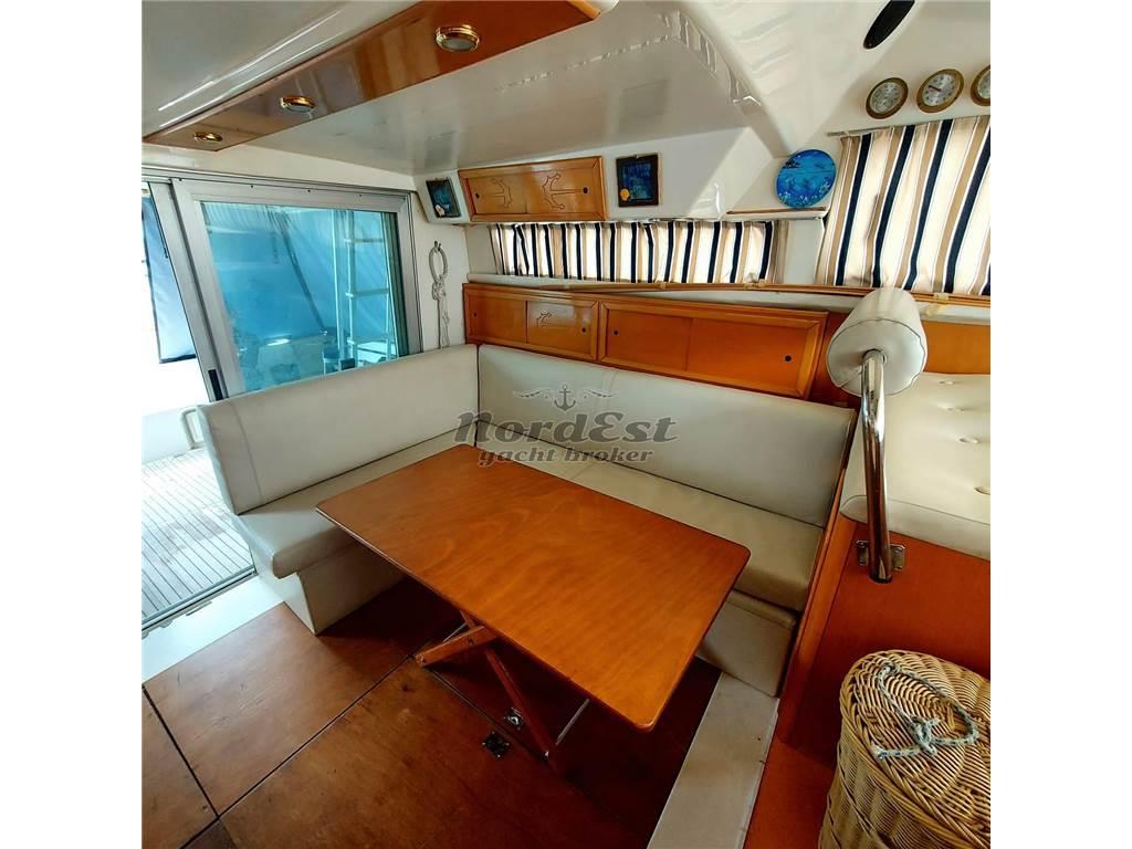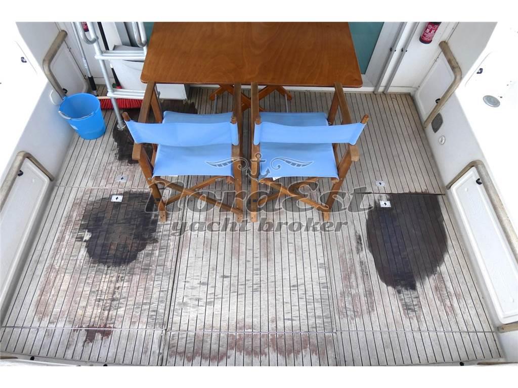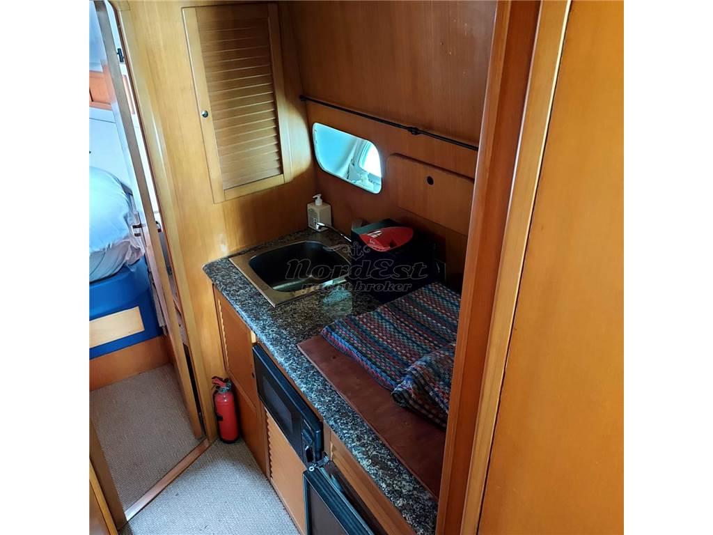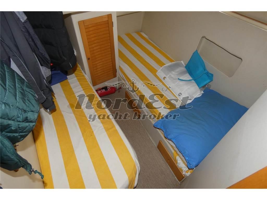 Notas internasInterni: DESCRIZIONE INTERNI Due cabine con letti in piano e due servizi. Cucina al piano inferiore. ----- Antenna TV satellitare Impianto stereo Impianto TV Tv Bagni: 2 Cabine: 2 Posti letto: 4+2 Cucina Forno: microonde Frigorifero Piano Cottura: 1 Notas de la instrumentaciónPilota automatico: Presente GPS: Geonav Plancetta: in teak Radar: Raymarine Strumenti vento Vhf: Presente Notas de armamentoDESCRIZIONE IMPIANTISTICA Verricello sostituito nel 2018, carena portata a zero nel 2018, turbine, iniettori revisionati tra il 2018 e il 2019. 2025 pulizia e revisione scambiatori con sbarco e sostituita pompa acqua salata. Generatore nuovo ancora da imbarcare ed installare. ----- Impianto antincendio Copertura pozzetto Doccia esterna Flaps Riscaldamento Zattera di salvatagio |