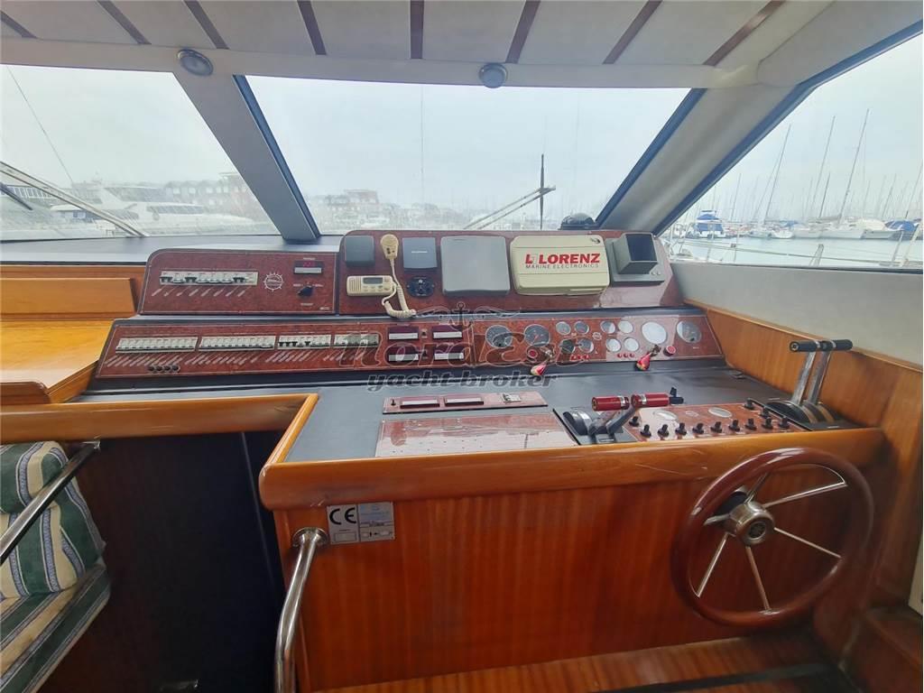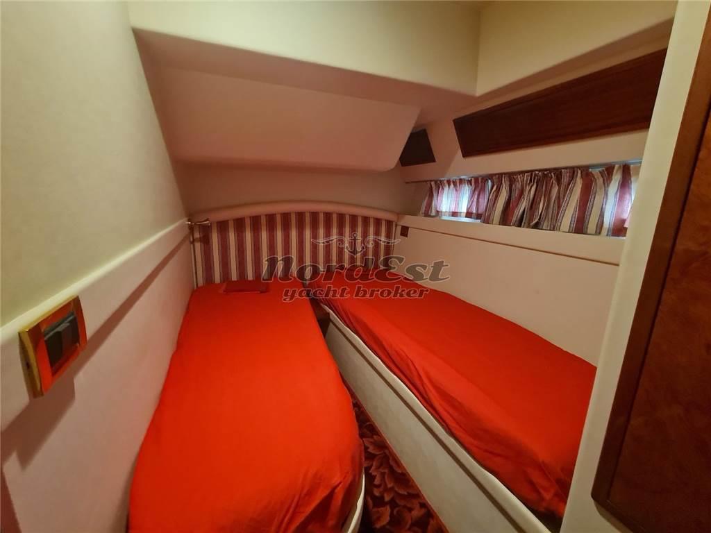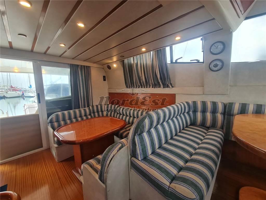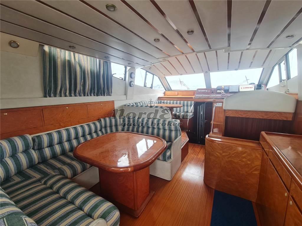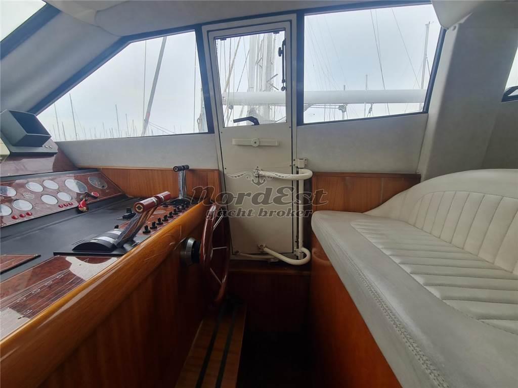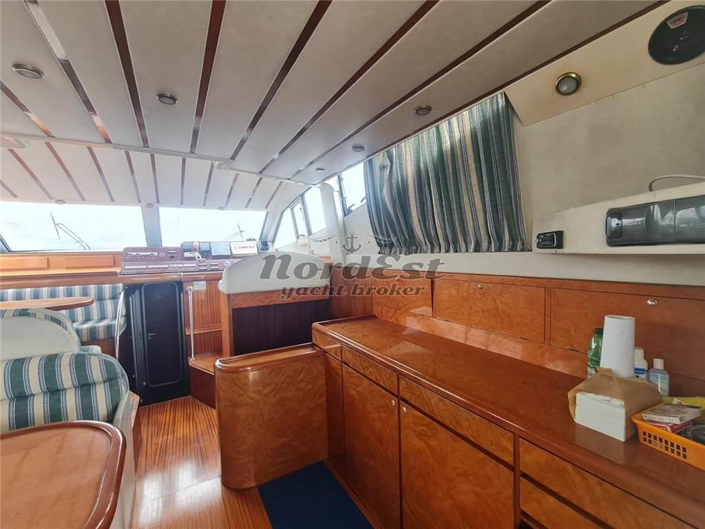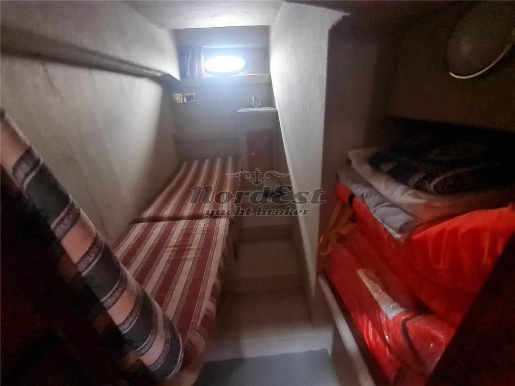 Notas internasAria condizionata: Presente Interni: DESCRIZIONE INTERNI Cucina al piano inferiore con annessa cabina marinaio. una cabina ospiti con letti separati ed una con letto alla francese. calpestio dinette in legno. ----- Mobile bar Impianto stereo Bagno equipaggio Bagni: 2 Cabina equipaggio Cabine: 3 Posti letto: 6+2 Cucina Forno: Presente Frigorifero Piano Cottura: 1 Notas de la instrumentaciónPilota automatico: Presente GPS: Presente Radar: Presente Vhf: Presente Notas de armamentoImpianto antincendio Contacatena Cuscineria prendisole Doccia esterna Elica di manovra a prua: Presente Faro orientabile Flaps |