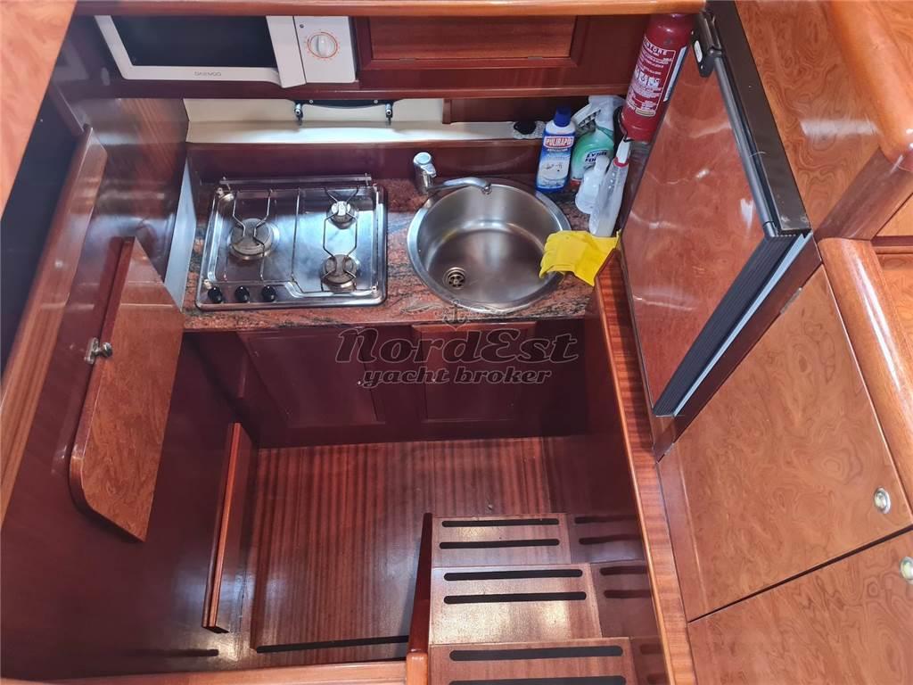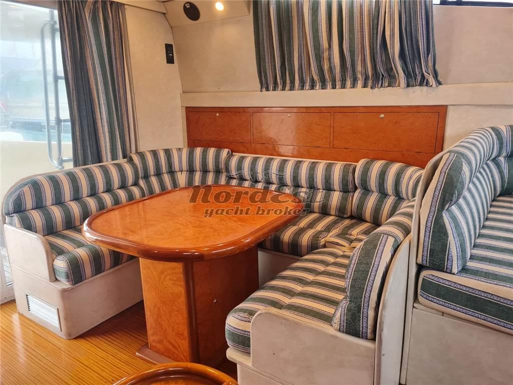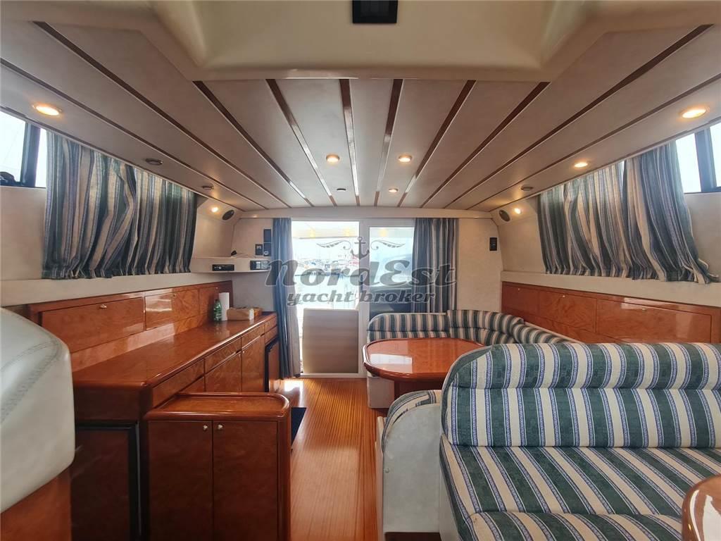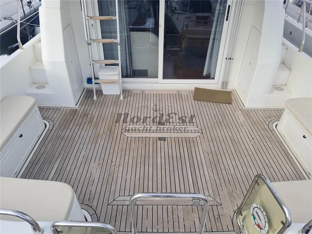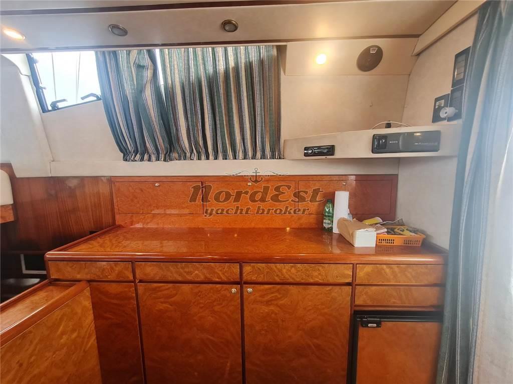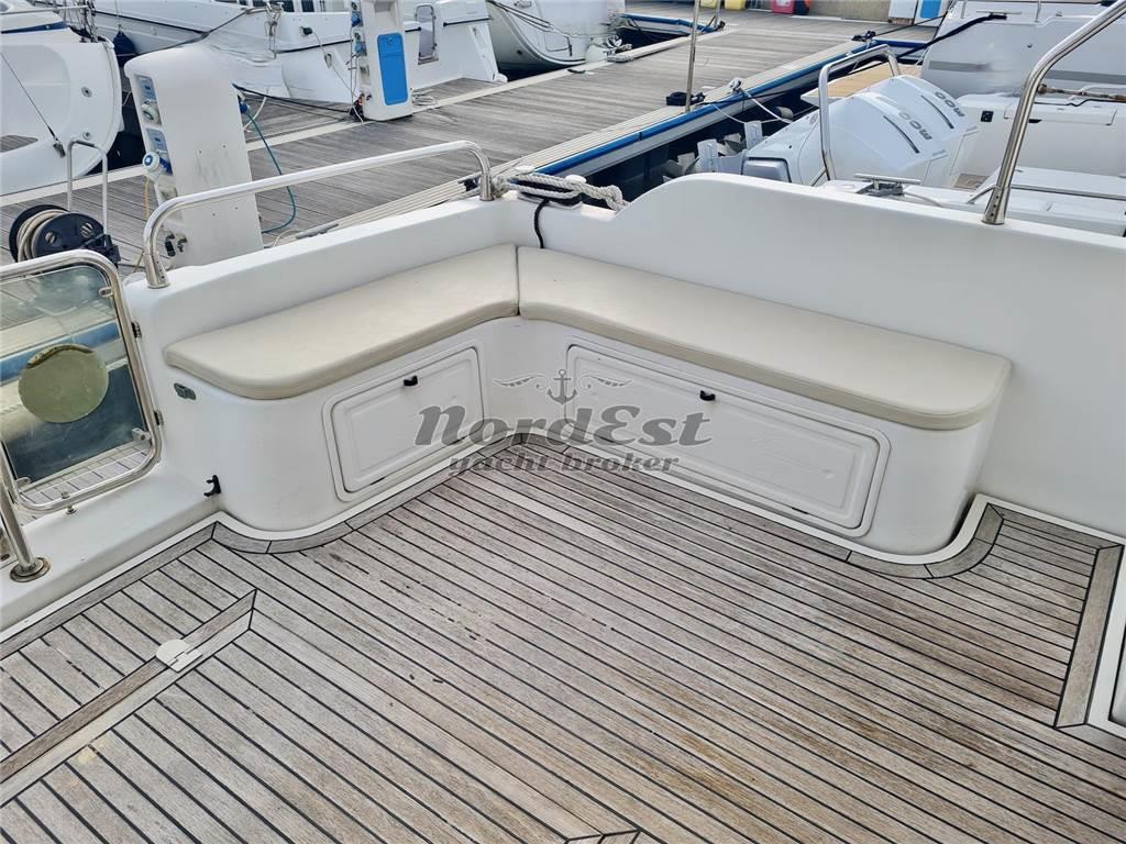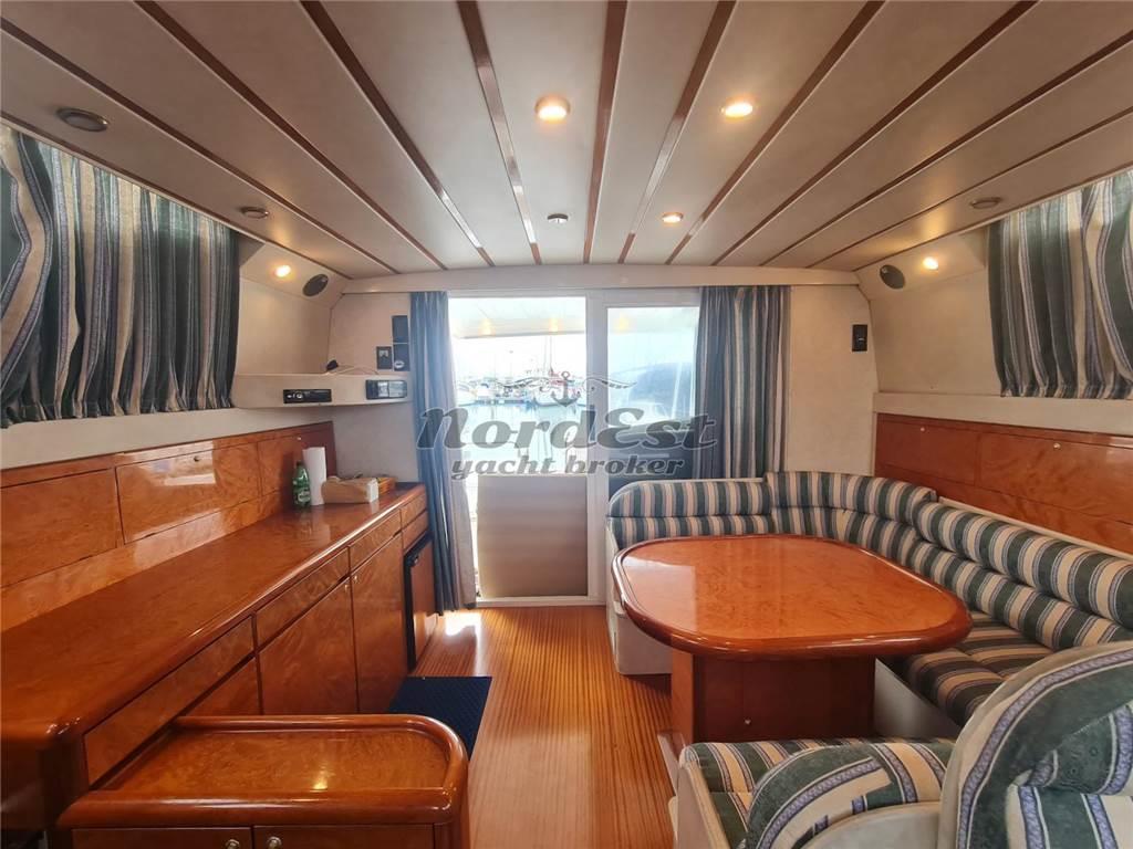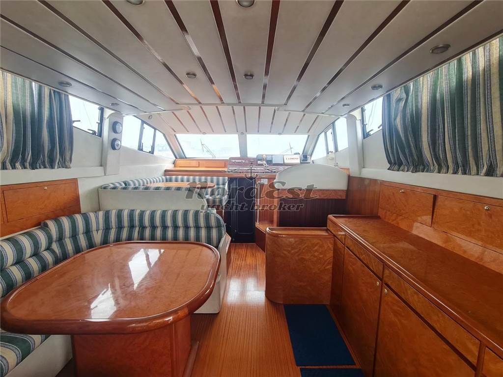 Notas internasAria condizionata: Presente Interni: DESCRIZIONE INTERNI Cucina al piano inferiore con annessa cabina marinaio. una cabina ospiti con letti separati ed una con letto alla francese. calpestio dinette in legno. ----- Mobile bar Impianto stereo Bagno equipaggio Bagni: 2 Cabina equipaggio Cabine: 3 Posti letto: 6+2 Cucina Forno: Presente Frigorifero Piano Cottura: 1 Notas de la instrumentaciónPilota automatico: Presente GPS: Presente Radar: Presente Vhf: Presente Notas de armamentoImpianto antincendio Contacatena Cuscineria prendisole Doccia esterna Elica di manovra a prua: Presente Faro orientabile Flaps |