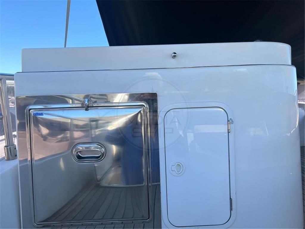 Notas internasNotas de la instrumentaciónBussola, Ecoscandaglio, GPS, Pilota automatico, Radar, Radio VHF.Notas de armamentoAllestimento tecnico e di coperta:Ancora, Elica di poppa - stern thruster, Elica di prua - bow thruster, Passerella, Piattaforma, Pompa di sentina elettrica, Scaletta da bagno, Tavolo pozzetto, Winch. Dotazioni domestiche di bordo: Aria condizionata. Intrattenimento: Ricevitore satellitare, TV. Cucina ed elettrodomestici: Frigorifero interno (Electric), Lavastoviglie, Lavatrice, Microonde, Piastra in vetroceramica. Tappezzerie: Bimini. |