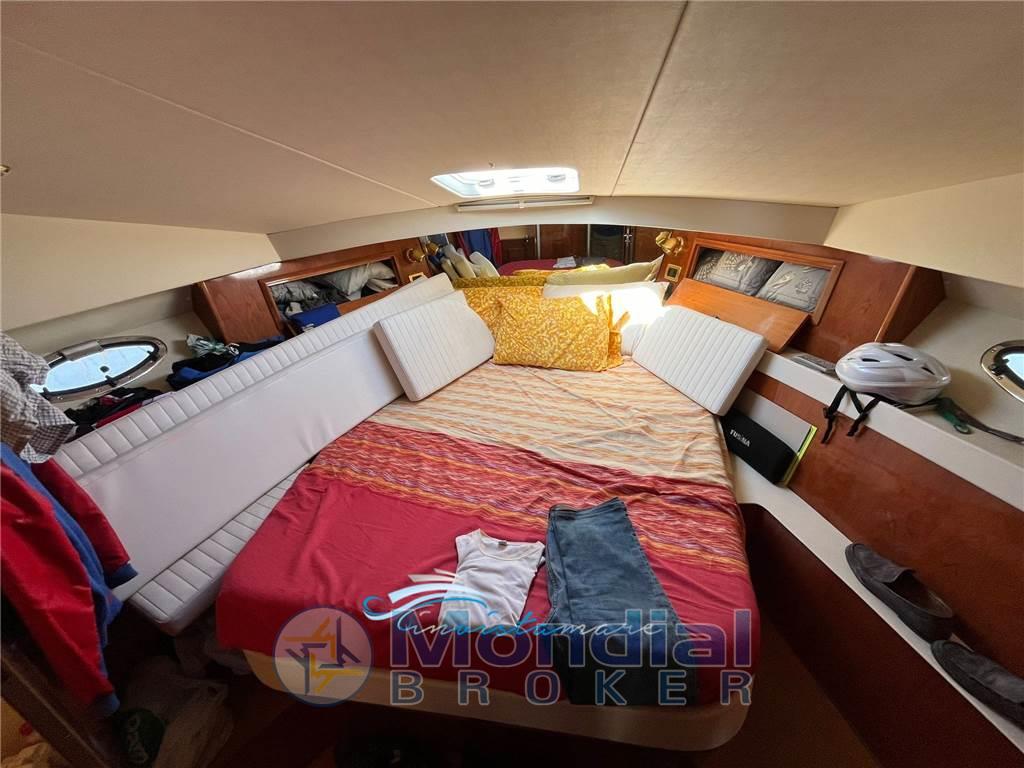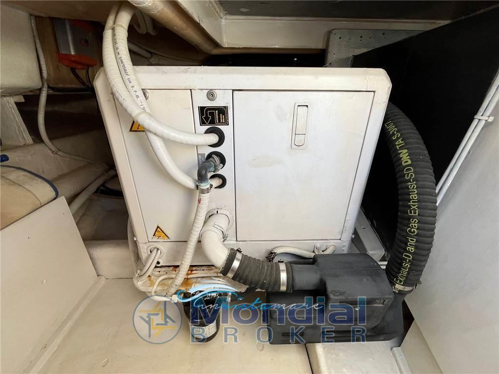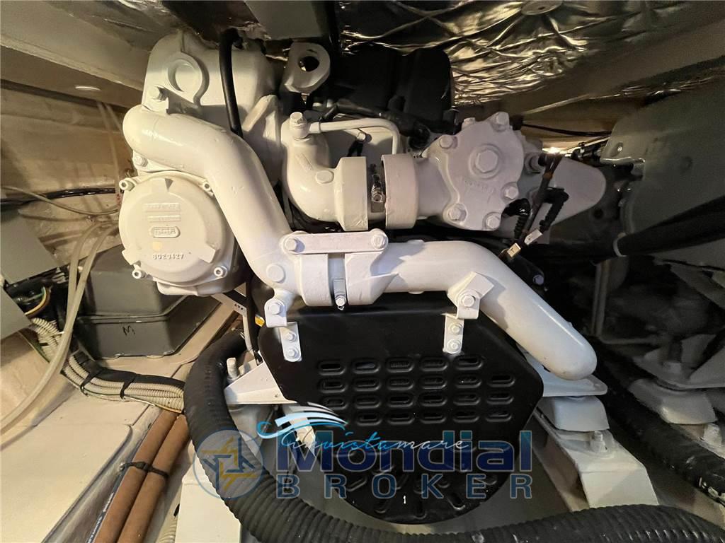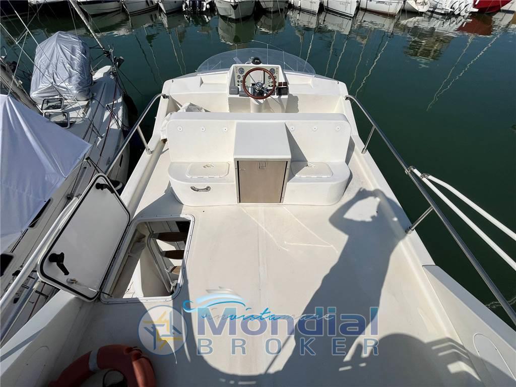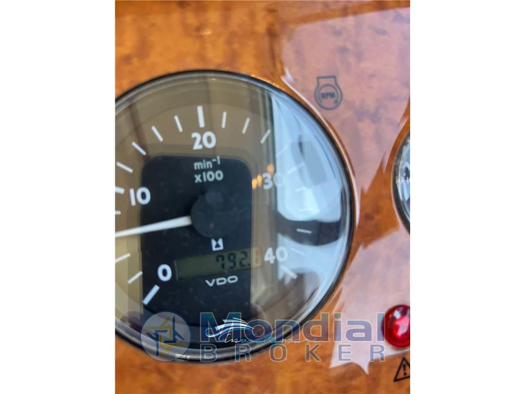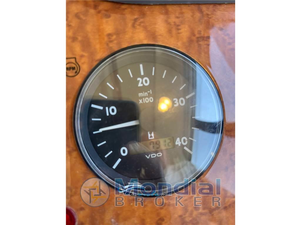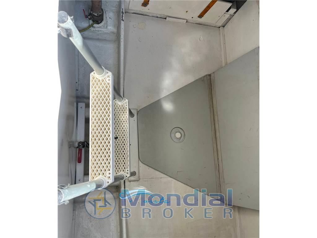 Notas internasNotas de la instrumentaciónComando motori elettronico, Elica di prua - bow thruster, Faro orientabile (elettrico), Flap idraulici (Lenco), GPS (Raymarine), Passerella (idraulica Besenzoni), Pilota automatico, Radar, Radio VHFNotas de armamentoAria condizionata, Bimini, Cucina, Cuscineria di prua, Cuscineria fly, Cuscineria Pozzetto, Frigorifero esterno (sul fly), Frigorifero interno, Stereo, TV, Prese a mare nuove |
