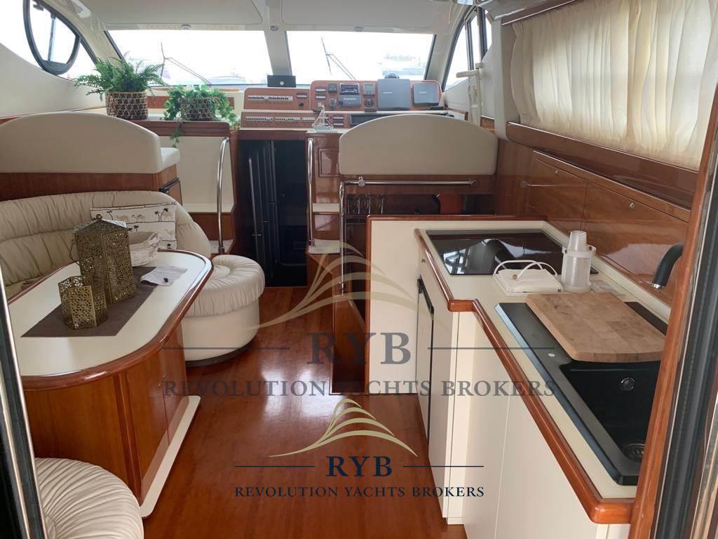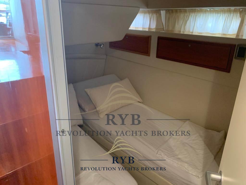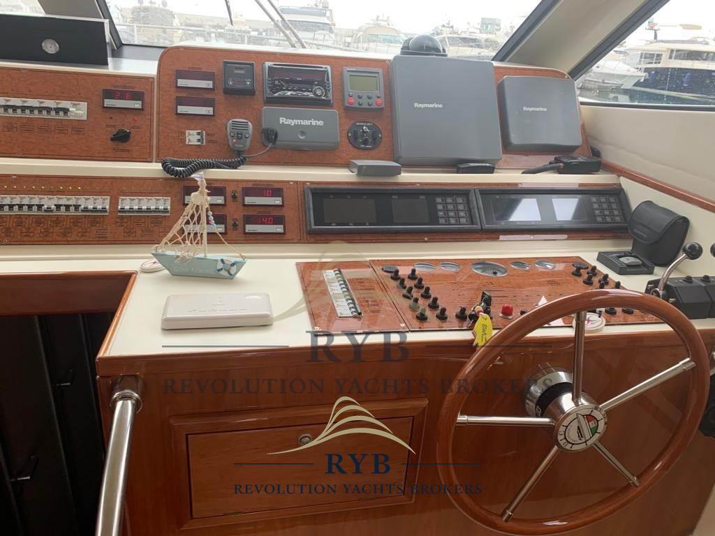 Notas internasNotas de la instrumentaciónAngolo barra, Antenna radar, Bussola, Ecoscandaglio, GPS, Log, Plotter con antenna GPS, Radar, Radio VHF.Notas de armamentoAllestimento tecnico e di coperta:Ancora, Autogonfiabile, Camminamenti laterali in teak, Elica di prua - bow thruster, Pompa di sentina automatica, Pompa di sentina elettrica, Pompa di sentina manuale, Winch tonneggio di poppa. Dotazioni domestiche di bordo: Aria condizionata. Intrattenimento: Altoparlanti, Impianto TV, Radio AM/FM. Tappezzerie: Bimini, Cuscineria completa, Cuscineria di poppa, Cuscineria di prua, Cuscineria fly, Tendalino. |