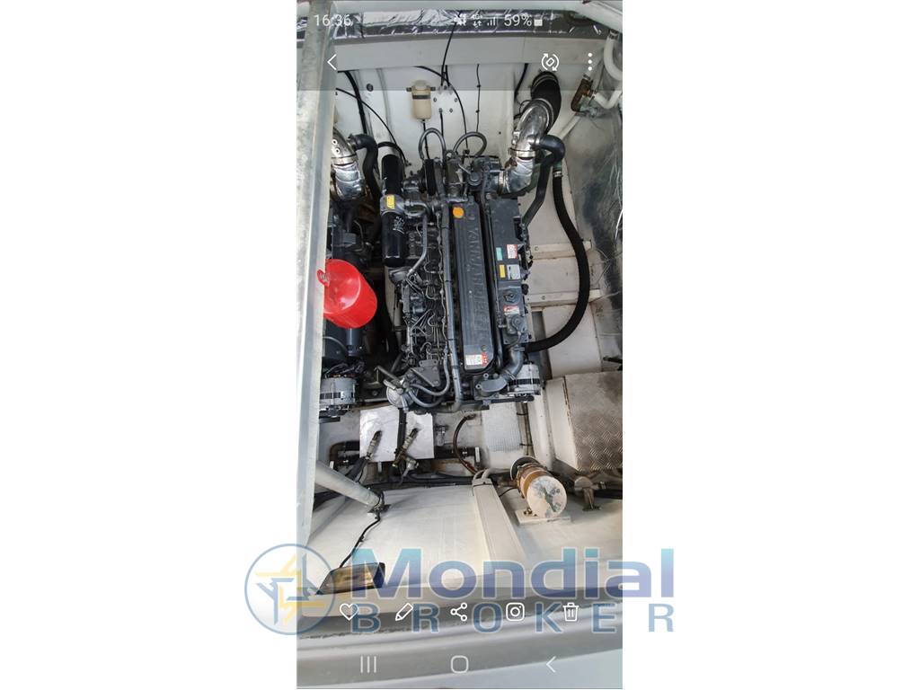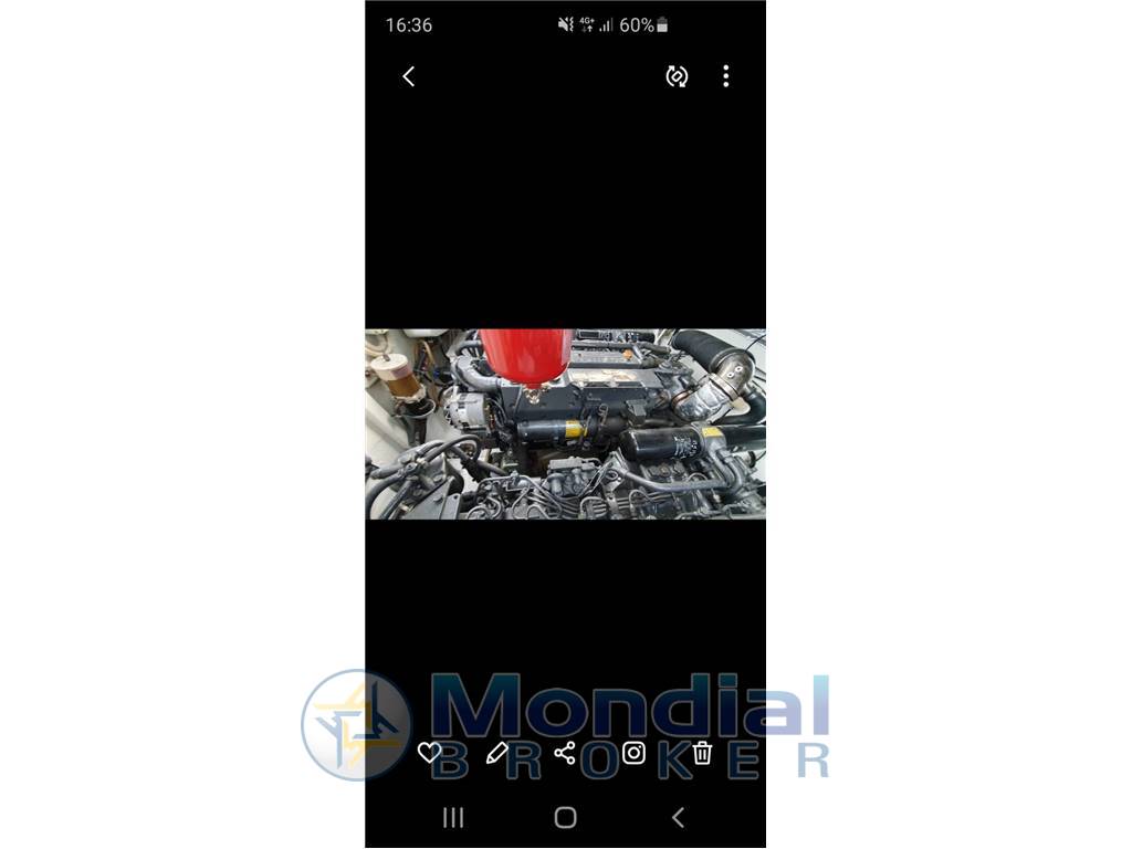Notas internasVerniciatura totale Motori revisionati e riverniciati Vano motori totalmente revisionato in tutte le sue parti Tappezzeria interna ed esterna Piano cottura e bagno Impianto elettrico,cablaggi,Flaps nuovi Eliche 5 pale nuove Revisione trasmissioni Jolly Drive con sostituzione dei giunti, cuffie,assi... Dinette trasformata con altezza 1,85mt Plancetta di poppa Cigarette 1,20mt x 2,70mt |