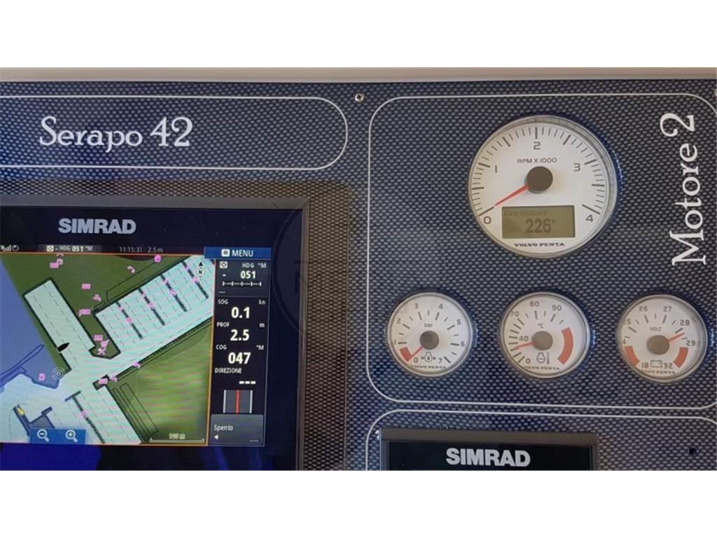 SERAPO 42 CABIN, 2012, SCAFO NERO, COPERTA IN TEAK, 2 x 370 HP VOLVO PENTA, 390 ORE DI MOTO, DIESEL, 3 CABINA/E, 1 BAGNO/I, 1 BOX DOCCIA, GENERATORE, |