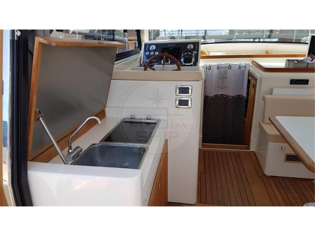 Notas internasNotas de la instrumentaciónBussola, Ecoscandaglio, Pilota automatico, Radar, Radio VHF.Notas de armamentoAllestimento tecnico e di coperta:Ancora, Passerella, Piattaforma, Pompa di sentina elettrica, Scaletta da bagno, Tavolo pozzetto, Winch. Dotazioni domestiche di bordo: Aria condizionata, Riscaldamento. Intrattenimento: TV. Cucina ed elettrodomestici: Forno, Frigorifero interno (Electric), Piastra in vetroceramica. |