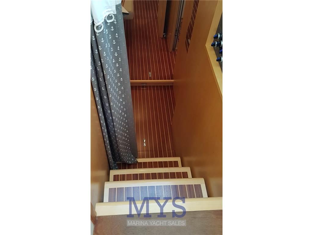 Notas internasCabina armatoriale a prua con letto matrimoniale a penisola 2 Cabine ospiti con letti singoli in piano Versione con dinette sotto coperta e cucina esterna con lavello, frigo e fuochi Interni in ciliegio Notas de la instrumentaciónBussolaGps Ecoscandaglio Autopilota VHF Flaps Joystik per IPS Manette elettroniche 2 frigo Grill Aria condizionata Generatore Mase da 3,5Kw Autoclave Boiler per acqua calda Presa 220v da banchina Carica batterie Salpancora elettrico Impianto TV Radio Passerella idraulica Notas de armamentoTeak pozzetto, plancetta e passavantiCuscineria completa Tendalino parasole di prua Scafo blù Copri vetri |
