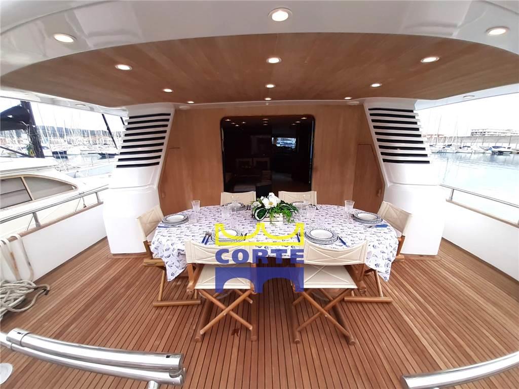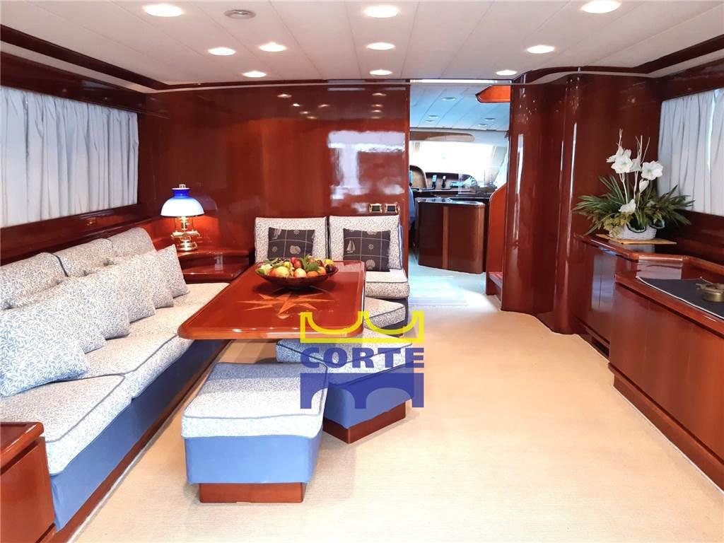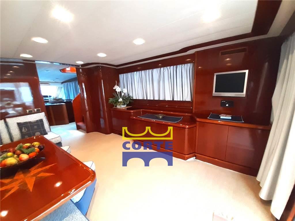 Notas de armamentoAltoparlanti, Antenna Satellitare TV, Bimini (top sul flt), Boiler, Clima reversibile (Climma 54000 btu), Congelatore, Copripozzetto, Cucina, Cuscineria completa, Decoder satellite, Dissalatore (2018), Forno, Frigorifero esterno, Frigorifero interno, Impianto acque nere, Impianto TV, Lavasciuga, Lavastoviglie, Piastra in vetroceramica, Prese interne 12v, Prese interne 220v, Stereo, 2 Telecamera (impianto tvcc pozzetto e vano motori), Teli copri finestra, Telo copriconsolle, Tendalino (estivi pozzetto), TV (LCD in ogni ambiente), WC marino elettrico, Compressore
