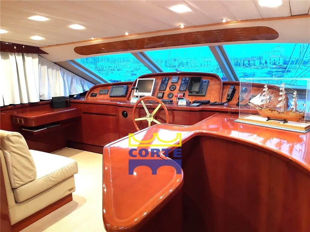 Notas de la instrumentaciónAllarme motore, Allarme sentina, Ancora, Angolo barra, Antenna radar, Autoclave (doppia), Batterie (motori 2021), Bussola, Camminamenti laterali in teak, Caricabatterie, Comando motori elettronico, Contamiglia, Display, Doccia esterna, Doppia timoneria, Ecoscandaglio, Elica di poppa - stern thruster, Elica di prua - bow thruster, Flap idraulici, GPS, Gruette per tender su fly, Impianto antincendio, Luci di cortesia, Passerella (idraulica), Piattaforma (poppa a movimentazione up down), Pilota automatico, Pompa di sentina automatica, Pompa di sentina elettrica, Porta ingresso, 2 Porta laterale, Pozzetto Teak, Presa 220V banchina, Presa acqua banchina, Radar, Radio VHF, Ripetitore strumentazione, Rollbar, Salpa Ancore Elettrico, Scaletta da bagno, Tavolo pozzetto, Tromba, 2 Winch tonneggio di poppa