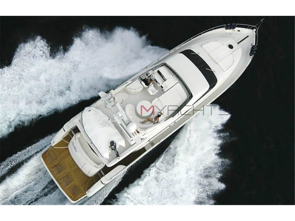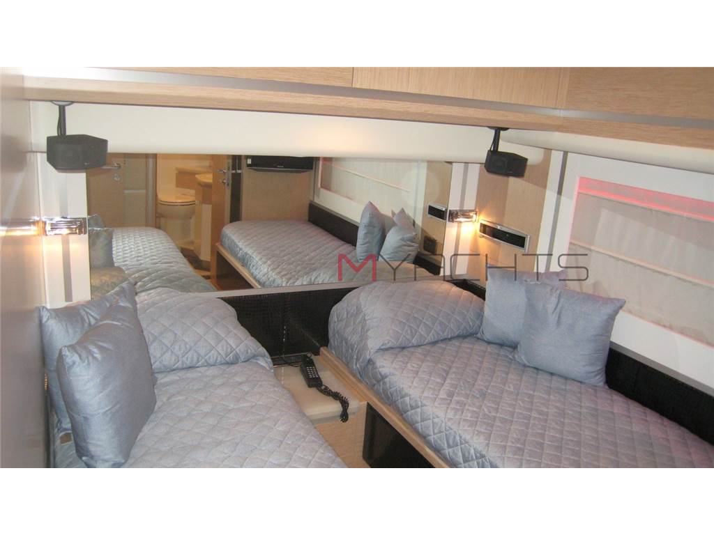 Notas internas6 passengers can be accommodated in style in 1 master, 1 VIP and 1 twin cabin, all with en suite facilities. Tenders & Toys: Williams Jet powered RIB 3.20m Sea doo RXT-X 255hp supercharged Underwater Sea-Scooter Water Ski & tubes Notas de la instrumentaciónBussola, Contamiglia, Ecoscandaglio, GPS, Interfono, Log, Pilota automatico, Plotter, Radar, Radio VHF, Stazione vento, Telefono satellitare.Notas de armamentoAllestimento tecnico e di coperta:Ancora, Doccia esterna, Doppia timoneria, Gruette, Passerella, Pozzetto Teak, Presa 220V banchina, Tavolo pozzetto, Tender, Winch Elettrico. Dotazioni domestiche di bordo: Aria condizionata, Prese interne 12v, Riscaldamento, WC marino elettrico. Dotazioni di sicurezza: Dotazioni di sicurezza entro 12 miglia, Dotazioni di sicurezza entro 50 miglia, E.P.I.R.B.. Intrattenimento: Impianto TV, Radio AM/FM, Stereo, TV. Cucina ed elettrodomestici: Cucina, Forno, Ghiacciaia, Lavasciuga, Lavastoviglie, Lavatrice. Tappezzerie: Bimini, Cuscineria completa, Cuscineria di poppa, Cuscineria di prua, Cuscineria fly, Tendalino. |