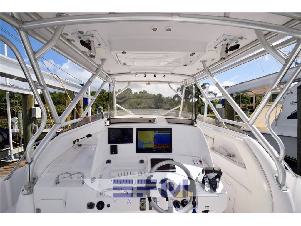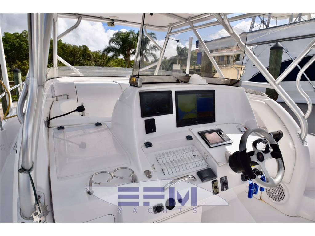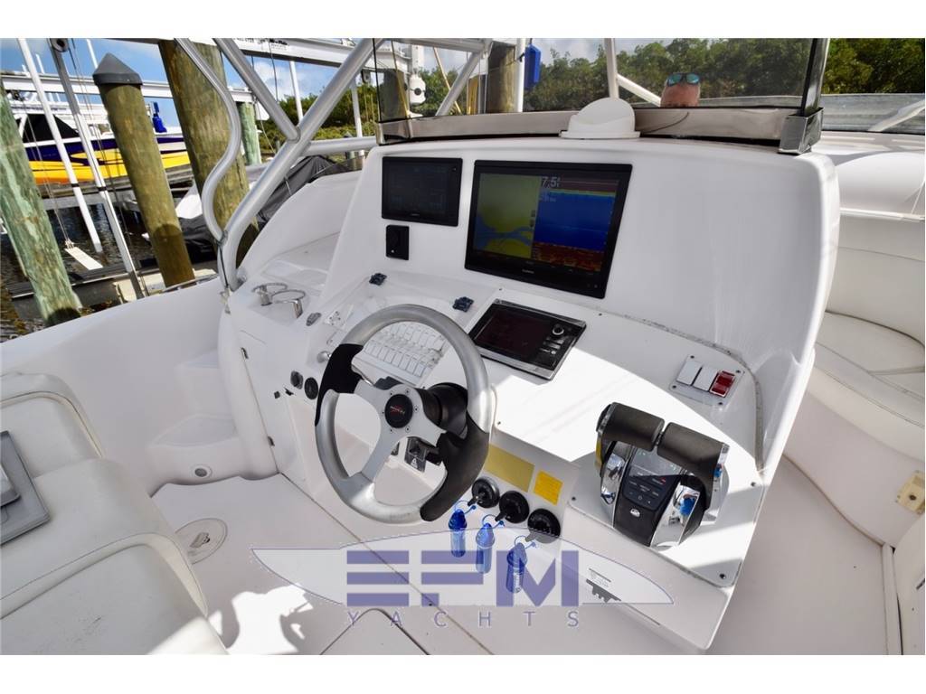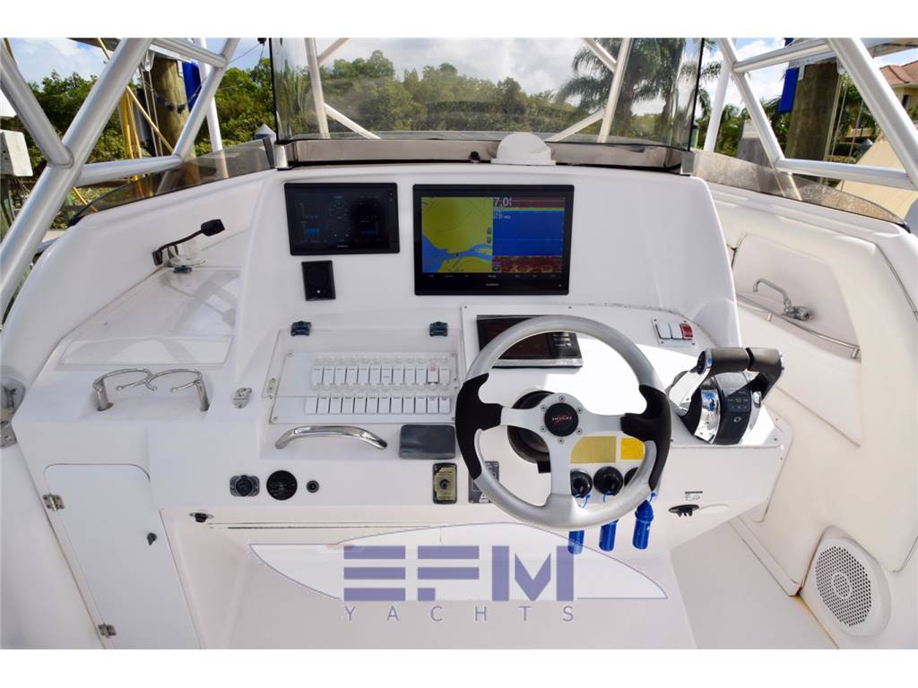 Notas internas1 CABIN OPEN SPACE 1 HEAD Notas de la instrumentaciónThis boat has also seen updates in electronics including:- Garmin 8616 Touchscreen Display and Chartplotter - Garmin GMR24XHD Radar - Garmin GXM54 - Sat Weather - Radio, Fusion Stereo. Repowered in 2016 with triple 300hp Mercury Verado motors with optional white paint and only 200 hours Notas de armamentoAnchor windlass, hardtop with rocket launcher, outriggers, live well, in deck fish boxes, transom seat, helm and forward lounge, cabin with ac/heat (no generator), galley, full stand up head. |