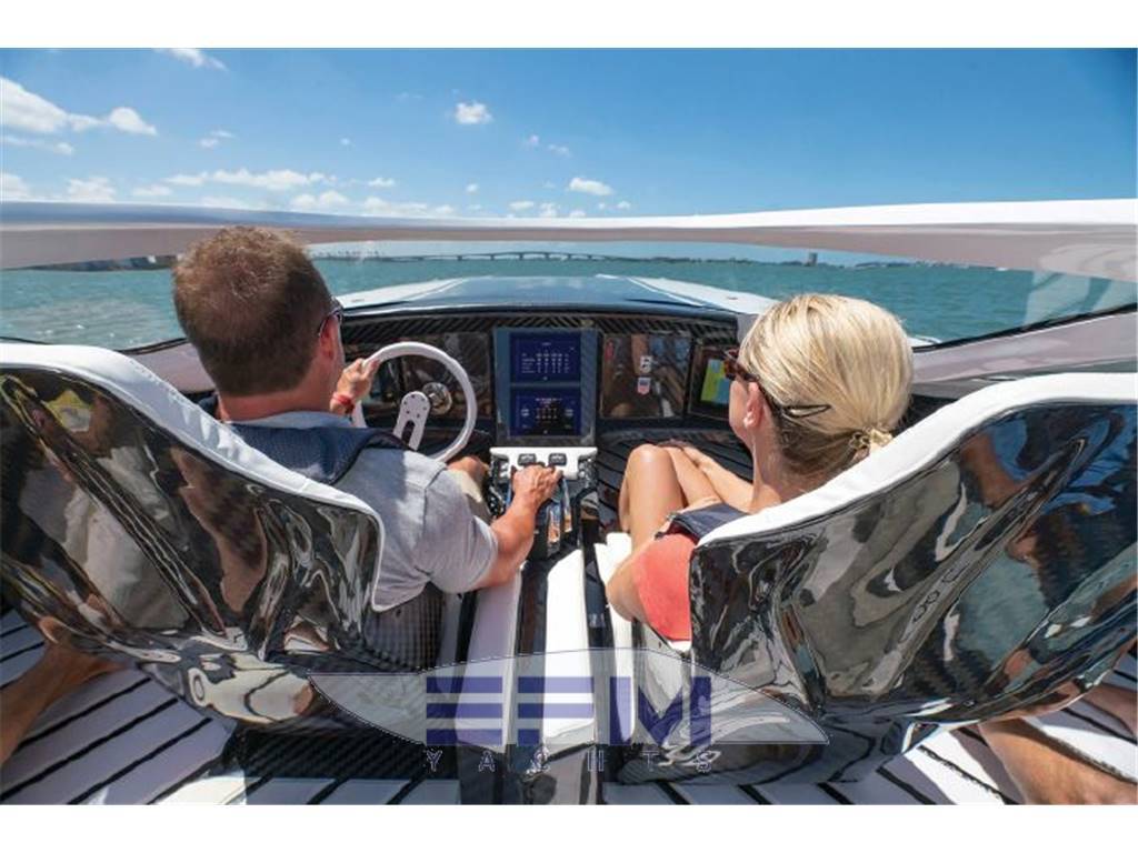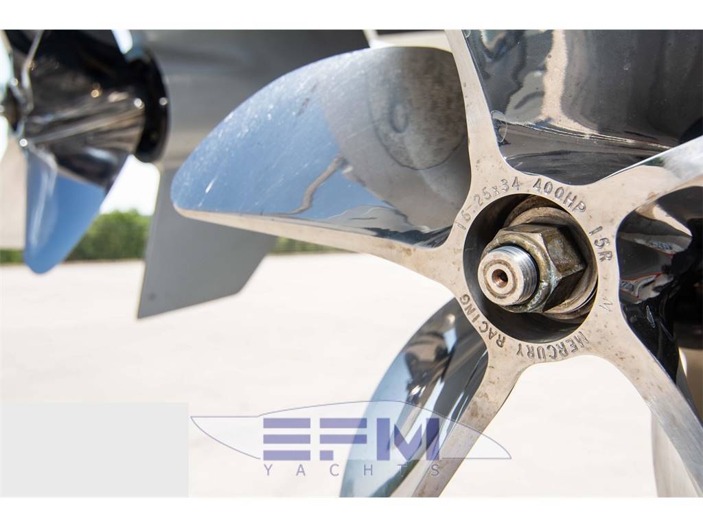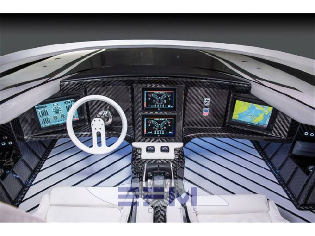 Notas internas• Twin Step Hull Design • Infused Epoxy Resin With Carbon Fiber over • Hexagon Multi-Cell Coring • Carbon and Epoxy Bulkheads Notas de la instrumentaciónMechanical and Electrical• Tinned Wiring • Fuel System - HD Aluminum - Dual 150 Gallons - Diurinal - EPA • Bildge Pumps (2) - 1200 gph - Auto/Manual • Fuel Filters - Mercury • Propellers - Mercury Racing CNC 5 Blade • Steering Hydraulic with Tilt Wheel • Courtesy Lights, Cockpit and Interiors LED • Lights - Navigation - Low Profile - Stainless LED • Battery Chargers - AGM Dual Purpose Batteries - SS Tray • 2 - Bank Battery System and Battery Switch • HD Anodized Engine Brackets - Manually Precision Adjustable • Non-Binding Tie Bar - Polished Stainless Steel • Bilge Pumps - 1500GPH • Bilge Thru-Holes - Low Profile - Anti Backflow - Stainless • Fuel Vents - Low Profile - Anti Backflow - Stainless • Fuel Fill - Low Profile - Stainless • Garboard - Style Drain Plug - Stainless • Deck Hatches - with Designated Gear Storage Notas de armamentoConvenience and Comfort - Cockpit• Bolstered Bucket Seats - Carbon Fiber - 6 • L-Shaped Settee - Port and Starboard - Stern • Flooring - SeaDeck - Composite • Cleats - 6 - Stainless Steel - Pull Up • Upholstery - Diamond or Patterned Stitching • LED Lighting • Cupholders - LED Dash • Dash - Carbon Fiber with Center Console Controls • Dash - LED Push Button Switches • Instrumentation - Vessel View 9" Dual Displays • Controls - Merc DTS - Clear Anodized • Steering Wheel - Custom • Starting - Mercury - Push to Start • Trim - Independent Trim Controls • Seating - Adjustable Anodized Aluminum Seat Bases • Electronics - Twin Garmin 12" Multi-Function Screens Audio • Source Unit - Media Master MM100s • Amplifier - 2 - 400 Watt, 4 Channel Marine Class D • Speaker (8) M-Series 7.7 Coaxial - Titanium Black with LED Ring • 4 Subwoofers |