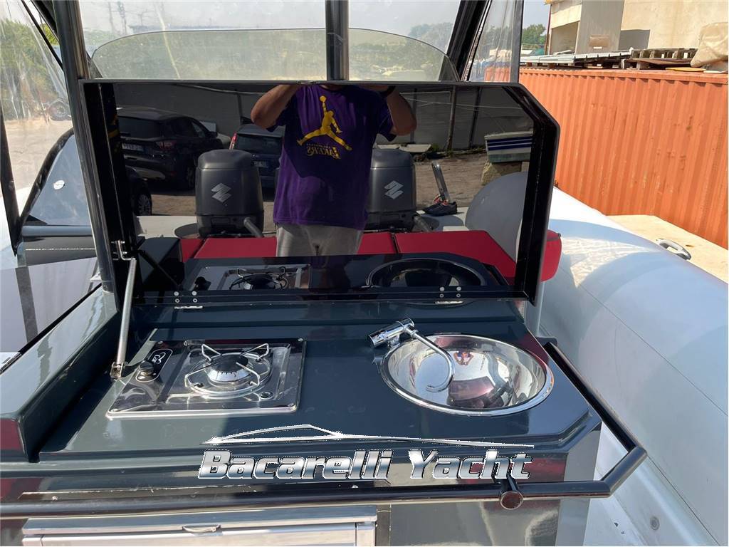 Notas internas-1 ampio letto a "V" di prua Notas de la instrumentación-bussola magnetica-gps garmin -3x manette elettroniche suzuky -pilota automatico garmin -stumentazione suzuky analogica/digitale - verricello elettrico Notas de armamento-t-top-cucina esterna con fuochi e lavello -frigorifero esterno -impianto stereo hertz -cuscineria 2025 -aria condizionata -tenda araba di prua |