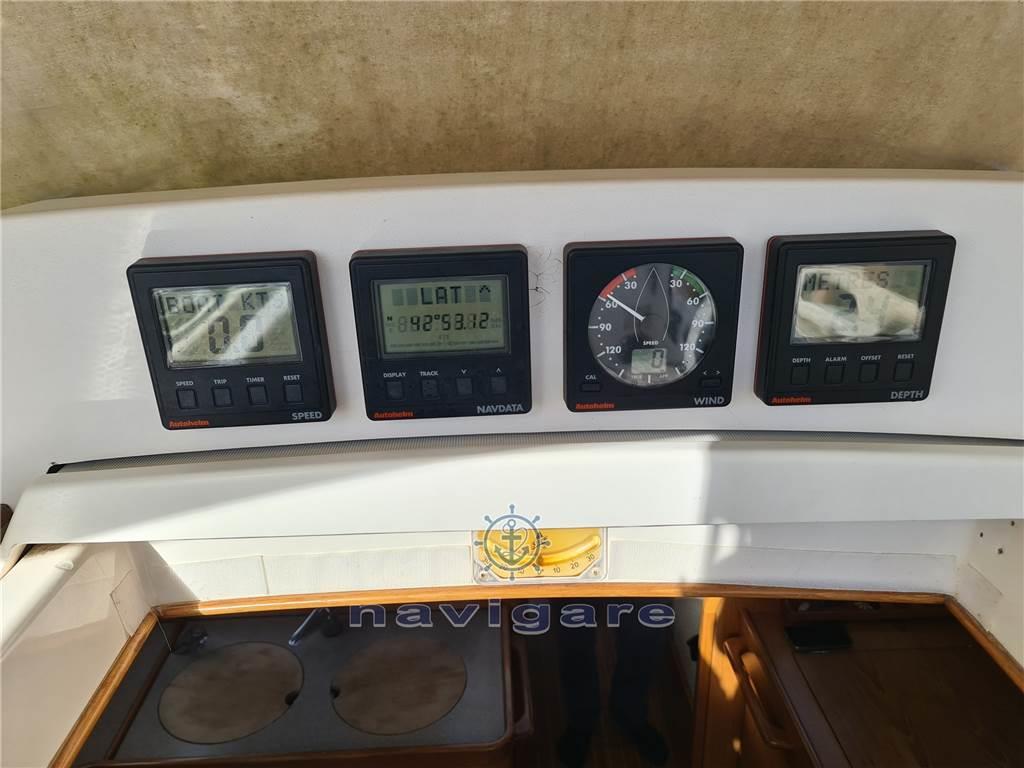 Notas de la instrumentaciónAllarme motore, 2 Ancora (BRUCE INOX E BRUCE ALLUMINIO), Angolo barra, Antenna radar (portata 34 mgl), Autoclave, 3 Batterie, Bussola, Camminamenti laterali in teak, Caricabatterie, Contamiglia (AUTOHELM), Doccia esterna, Ecoscandaglio, Elica di prua - bow thruster (SIDE-POWER INSTALLATA DOPO IL 2000), Epirb (GME MT403 08.2017), GPS (GARMIN 7408xsv 08.2017), Log, Luci di cortesia (FULL LED), Passerella (CARBONIO ), Pilota automatico (AUTOHELM), Plotter (FURUNO), Pompa di sentina automatica, Pompa di sentina elettrica, Pompa di sentina manuale, Pozzetto Teak, Presa 220V banchina, Radar ( Furuno 1622), Radio VHF (Shipmate RS8100/Italia), Ripetitori all'albero, Salpa Ancore Elettrico, Sartiame in tondino (2008), Scaletta da bagno, Stazione vento (AUTOHELM), Supporto motore fuoribordo, Tender (2.5 metri e SUZUKI 2.5 CV), Tientibene con cancelletti, Tromba, 6 Winch (4 BARIENT E 2 LEWMAR ), Windex