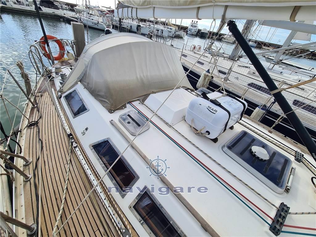 Notas de armamentoAntenna Satellitare TV, Aria condizionata (CON POMPA DI CALORE ), Barometro, Binocolo, Boetta fumogena, Boiler (30 l), Cassetta di pronto soccorso, Cucina, Cuscineria completa, E.P.I.R.B., Forno, Frigorifero interno, Fuochi a mano a luce rossa, Giubbetti di salvataggio, Impianto acque nere (CON MACERATORE), Impianto TV, Oscuranti, Prese interne 12v, Prese interne 220v, Radio AM/FM, Razzi a paracadute a luce rossa, Riflettore Radar, Salvagente anulare con cima munita di boetta luminosa, Serbatoio Acque Nere, Stereo, Tendalino, TV, 2 WC marino manuale, Zattera di salvataggio, Randa full-batten ONE SAIL, Genoa ONE SAIL ROLLABILE SU ROLLAFIOCCO ELETTRICO, Gennaker - MPS ONE SAIL, Attrezzatura Gennaker MPS, Avvolgi Fiocco ELETTRICO - BAMAR, Carrelli a sfera randa, Lazy Bag, Sail Bag, Tenditore strallo di poppa IDRAULICO, Trasto randa, Vang IDRAULICO, SPRAYHOOD