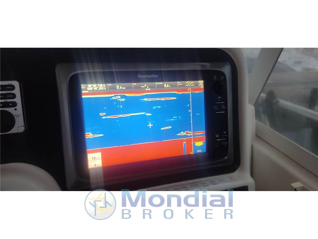 Notas de la instrumentaciónAllarme fumo/gas, 2 Allarme motore, Allarme sentina, Ancora, Antenna radar (Raymarine), Autoclave, 4 Batterie, Bussola, Caricabatterie, Comando motori elettronico, Computer di bordo, Contametri catena, Contamiglia, Doccia esterna, Ecoscandaglio (Raymarine), Fari fissi a poppa, Flap idraulici, Indicatori Flaps, Lavandino nel Pozzetto, Luci di cortesia, Luci subacquee (faro di profondità), Pilota automatico (Raymarine), Plotter con antenna GPS (Raymarine), Pompa di sentina automatica, Porta ingresso, Presa 220V banchina, Radio VHF, Salpa Ancore Elettrico, Scaletta da bagno, Tavolo Salone Abbattibile, Tromba, T-Top, Winch tonneggio di prua