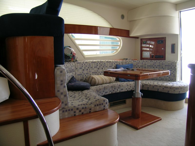 Notas internasNotas de la instrumentaciónVHF, eco, registro, 2 x plotter, piloto automático, compás, indicador del ángulo del timón, dirección dual, la instrumentación de doble, flaps, molinete eléctrico, generador deNotas de armamentoautoclave, aire acondicionado, calefacción, minibar, caja fuerte, TV, equipo de música, toldo cubierta diferentes, bimini, cojines y colchones de agua exterior, calientes, la embarcación auxiliar + plataforma fuera de borda, popa, electro-pasarela hidráulica, fondeadero, controlador de yate |