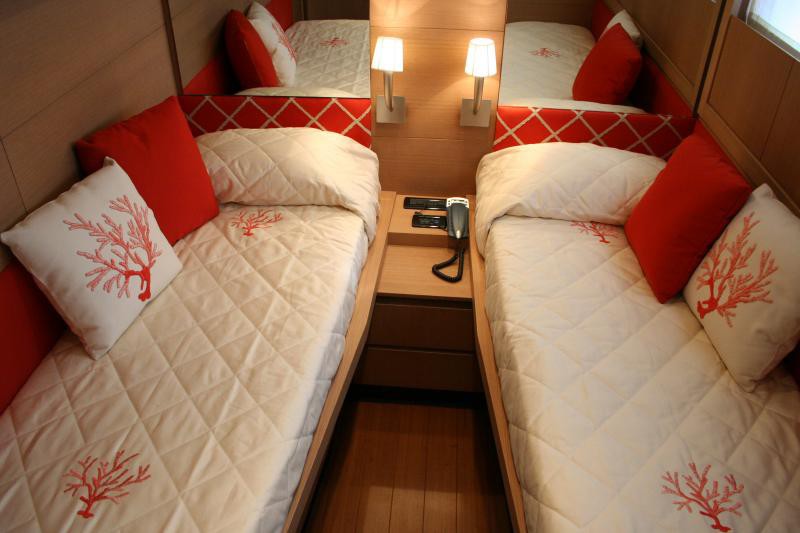 Notas internasLa cabina en el centro de la proa del barco VIP GUEST cabina 2 camarotes con plano camas todas las cabinas tienen baño privado con cabina de ducha de EUIPAGGIO en la popa con 3 camas