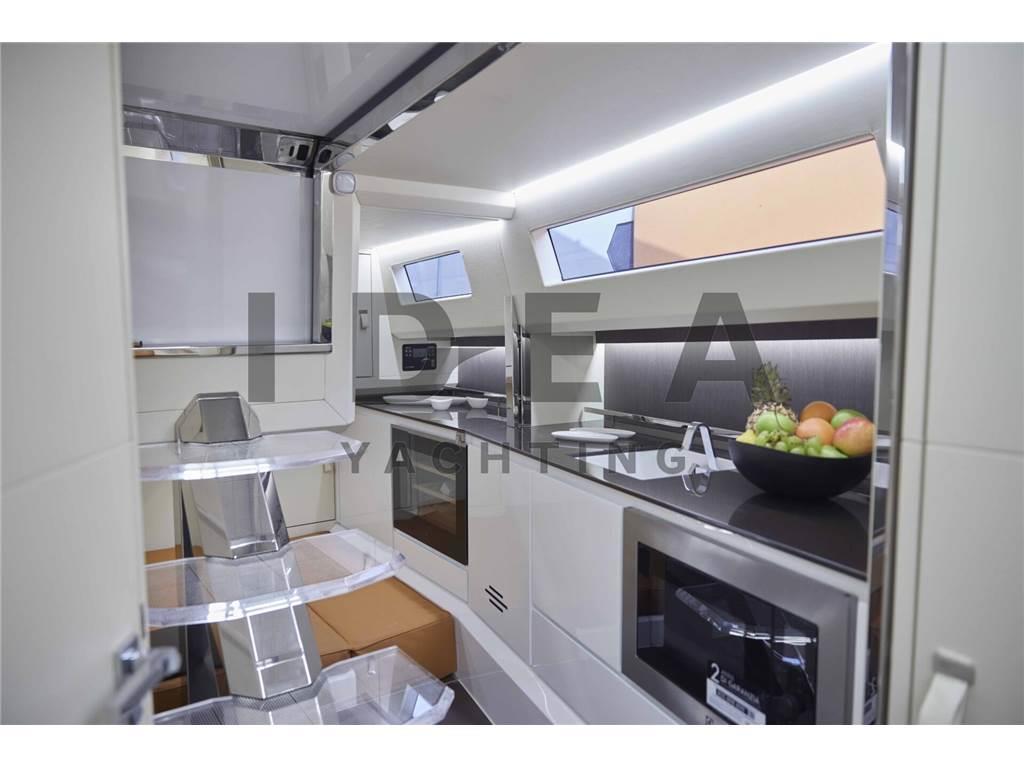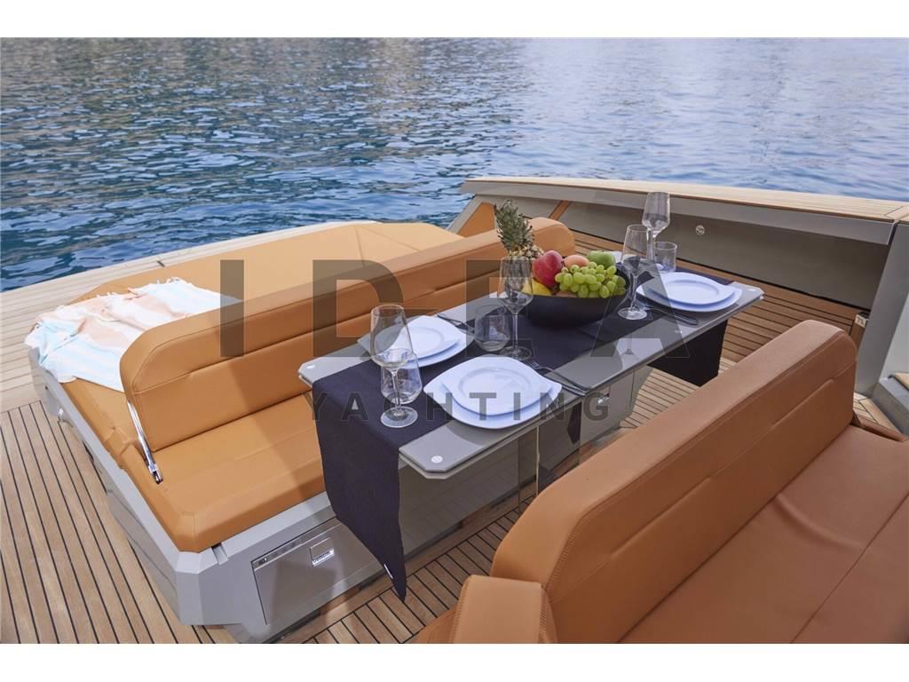 Notas internasNotas de la instrumentaciónAIS (Garmin), Angolo barra, Antenna radar, Bussola, Comando motori elettronico, Computer di bordo, Contametri catena, Contamiglia, DSC vhf, Ecoscandaglio (Garmin), GPS, Interfaccia, Joystick (Volvo Penta), Log, Pilota automatico (Volvo), 2 Plotter (Garmin 12" Multifunction Touchscreen), Radar (Garmin), Radio VHF.Notas de armamentoSISTEMI DI BORDOSistema LowSpeed (Volvo) Kit di protezione contro la corrosione (Volvo) ESTERNI Falchette laterali e prua in teak Console di guida con superficie Idrorepellente Sedile di guida in materiale composito con rivestimento in colori personalizzati INTERNI Scala dal design contemporaneo in acciaio inox e plexiglass con illuminazione Interni rivestiti in tessuto e finiture in eco-pelle Dinette trasformabile con tavolo + area di stivaggio a poppa con divano Luci da lettura Tavolo elettrico interno (convertibile in letto) |