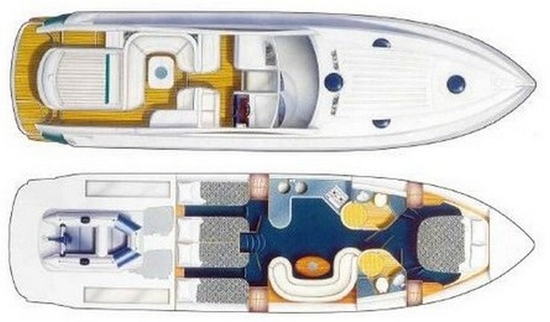 Notas internasNotas de la instrumentaciónGPS, sonar de profundidad, vhf, piloto automático, tridata, Molinete eléctrico, passerella idraulica, elica di prua, aire acondicionado frÃo, placas de cerámica de vidrio, frigo 2, parrilla en la cabinaNotas de armamentoCabina de teca y madera de teca en la cabina, cocina completa, toldo externo, lleno de cuscineri externa, cabina de cierre total de toldo, Hanger a licitación, cinturón de casco azul |